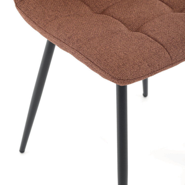 Jídelní židle DCL-V2017 BR2 kombinuje pohodlí s praktickým designem vhodným do moderních interiérů. Sedák a opěradlo jsou potaženy hnědou látkou, která je snadno udržovatelná a doplněná designovým prošitím pro zvýraznění estetického dojmu. Černé matné kovové nohy zajišťují stabilitu a pevnost... více informací o zboží