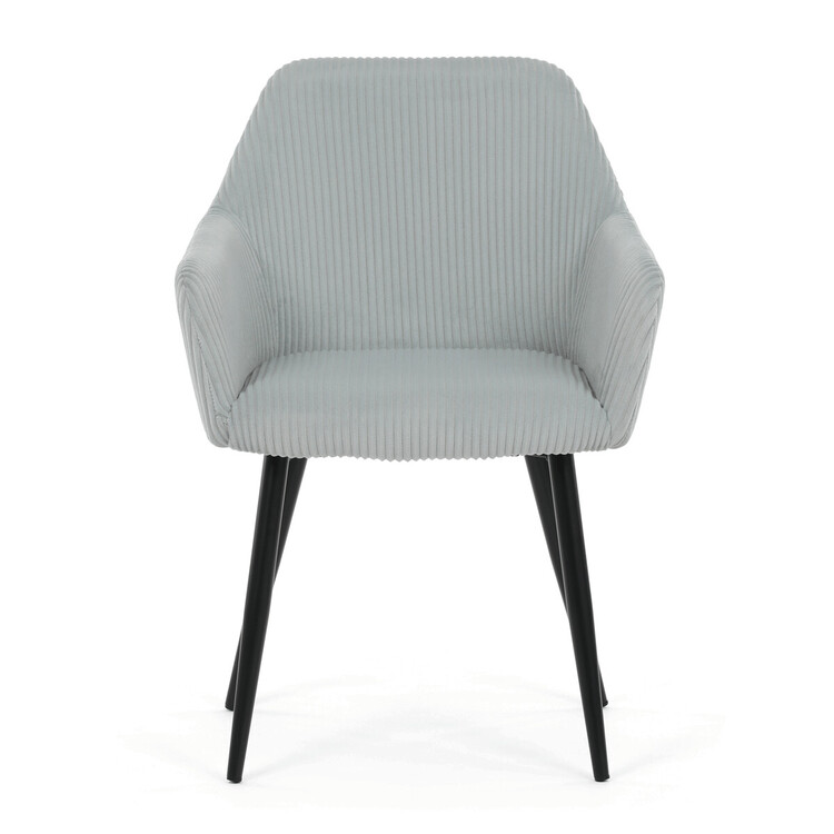 Čalouněná jídelní židle s područkami v světle modrém manšestru nabízí pohodlné sezení s příjemnou texturou látky, která je příjemná na dotek a snadno se udržuje. Sedák i opěradlo jsou vyplněny měkkou pěnou pro zvýšení komfortu během delšího sezení. Stabilní kovové nohy v černém matném... více informací o zboží
