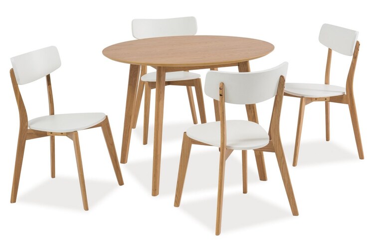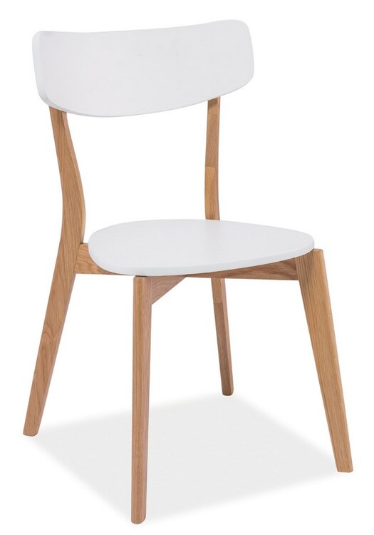 Elegantní dřevěná židle v moderním stylu Scandinavian. Sedací část a opěrka je vyrobena z vysoce kvalitní MDF lakované bílou barvou odolnou proti oděru, nohy jsou ze dřeva v barvě dub. Židle je z kolekce nábytku MOSSO, který naleznete v naší uvedené nabídce.CASA 11514
