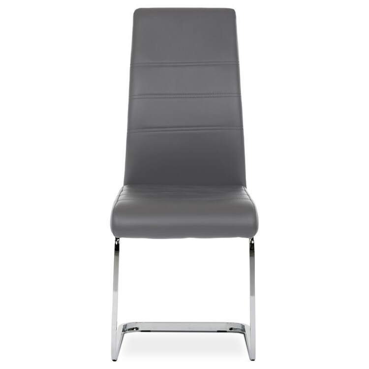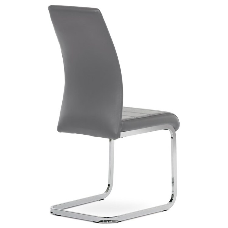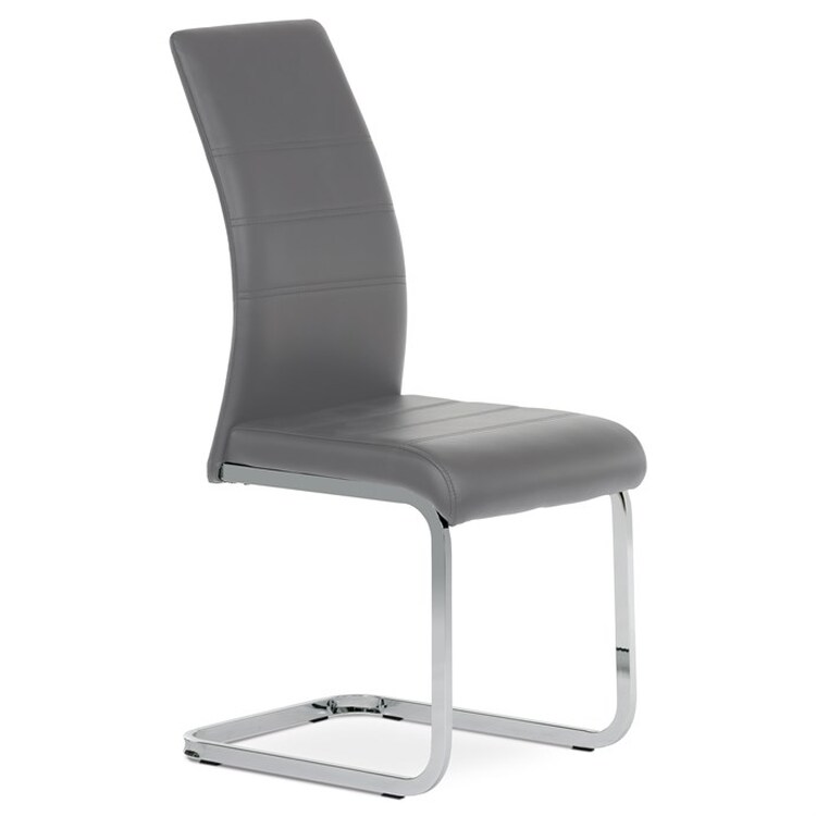 Moderní jídelní židle značky Autronic zaujme svým elegantním designem, který je ideální pro stylové interiéry. Potah z šedé ekokůže v kombinaci s chromovanou kovovou podnoží ve tvaru pohupující konstrukce přináší nejen atraktivní vzhled, ale také vysoký komfort sezení. Pohodlné polstrování z PU pěny zajišťuje měkký posed a dlouhou životnost. Židle je snadno udržovatelná díky odolnému materiálu a hodí se jak do moderní jídelny, tak i do komerčních prostor. S touto židlí vnese značka Autronic do každého prostoru styl a funkčnost v dokonalém spojení.