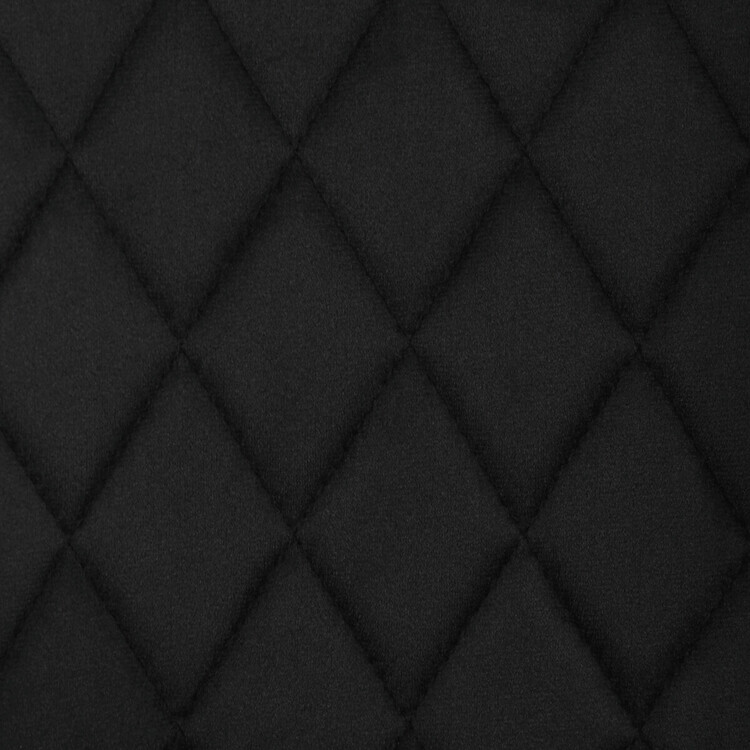 Jídelní židle s černým sametovým potahem nabízí pohodlné sezení díky měkkému čalounění a ergonomicky tvarovaným područkám. Čalounění je doplněno designovým prošitím v kosočtverečkovém vzoru, které zvýrazňuje její moderní vzhled. Pevné kovové nohy v černém matném provedení zajišťují stabilitu a dlouhou životnost židle. Sametová látka je příjemná na dotek a snadno se udržuje, což ji předurčuje k použití v jídelnách i dalších obytných prostorách. Židle není otočná, což přispívá k její jednoduché a pevné konstrukci.