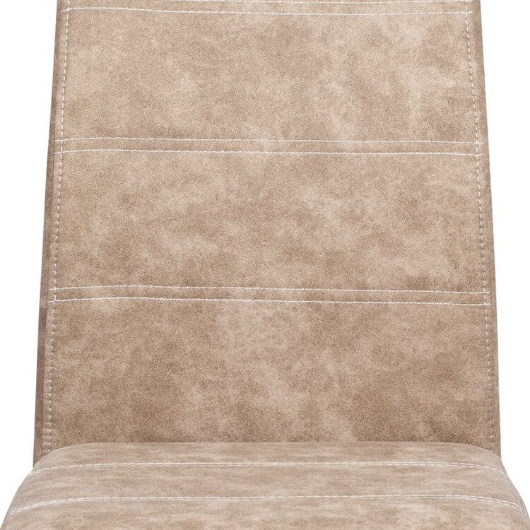Jídelní židle HC-483 CRM3 v béžovém odstínu s potahem z látky v dekoru vintage kůže kombinuje stylový vzhled s praktickými vlastnostmi. Čalounění z kvalitní látky připomínající kůži je příjemné na dotek a snadno se udržuje, zatímco pevná kovová chromovaná podnož zajišťuje stabilitu a odolnost.... více informací o zboží