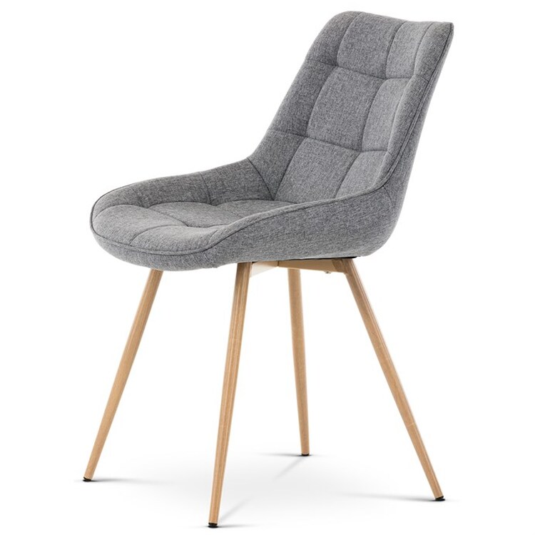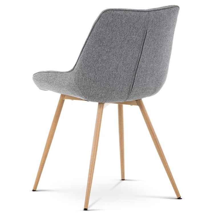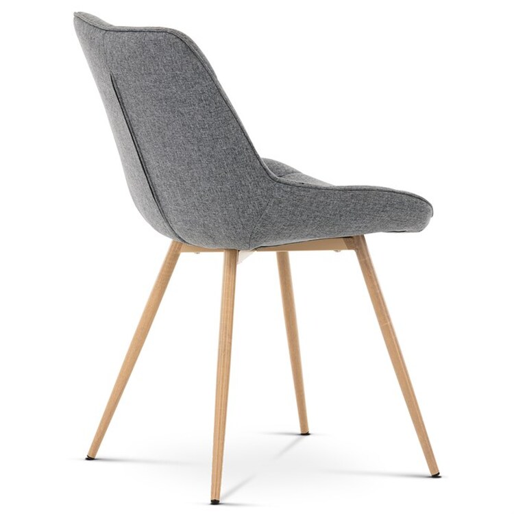 Jídelní židle CT-394 GREY2 kombinuje moderní design s pohodlím díky čalounění v šedé látce s výrazným designovým prošitím, které zdůrazňuje tvarované sedadlo a opěradlo. Pevné kovové nohy v dekoru dubu zajišťují stabilitu a dlouhou životnost, přičemž jejich povrchová úprava dodává židli přírodní vzhled. Židle nemá područky ani otočný mechanismus, což ji činí praktickou a snadno umístitelnou do různých prostorů. Ergonomicky tvarované sedadlo podporuje pohodlné sezení při jídelních aktivitách. Díky kvalitnímu zpracování a použitým materiálům je židle vhodná pro každodenní použití v domácnostech i komerčních prostorách.