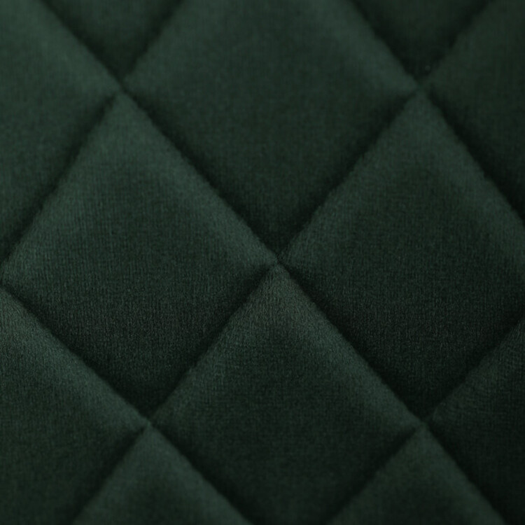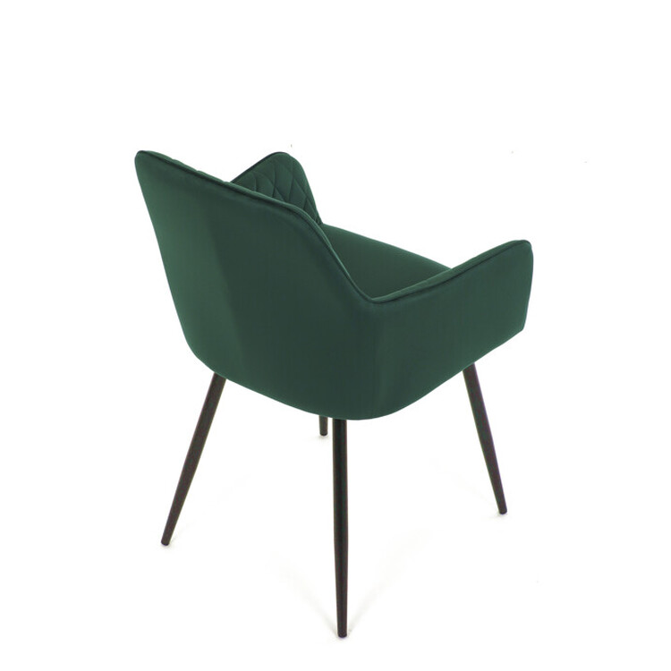 Jídelní židle s označením DCH-215 GRN4 nabízí pohodlné sezení díky čalounění z kvalitní zelené sametové látky, která je příjemná na dotek a snadno se udržuje. Opěradlo i sedák jsou doplněny designovým prošitím v kosočtverečném vzoru, které podtrhuje moderní vzhled židle. Pevné černé kovové nohy zajišťují stabilitu a dlouhou životnost, zatímco integrované područky přispívají k vyššímu komfortu při sezení. Židle je určena pro použití v jídelnách, kuchyních či kavárnách, kde kombinuje estetiku s funkčností.