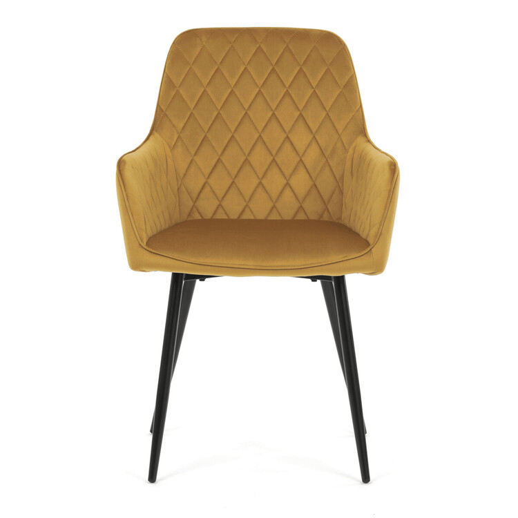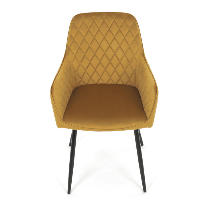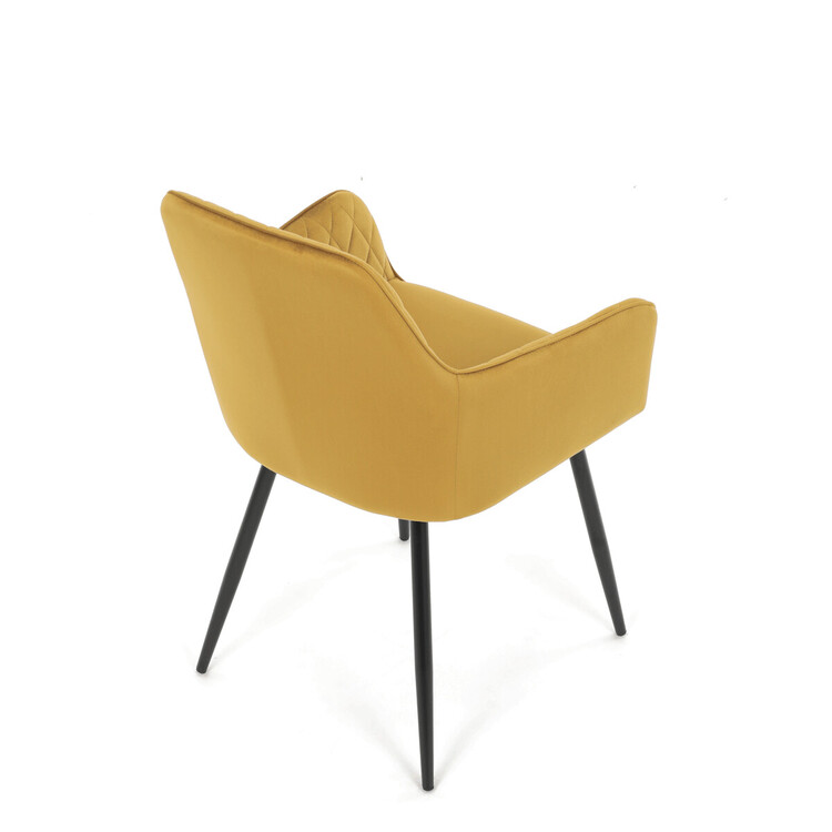 Jídelní židle s označením DCH-215 YEL4 nabízí pohodlné sezení díky čalounění z měkké žluté sametové látky, která je doplněna designovým prošitím v kosočtverečném vzoru na opěradle a područkách. Pevné kovové nohy v černém matném provedení zajišťují stabilitu a dlouhou životnost židle.... více informací o zboží