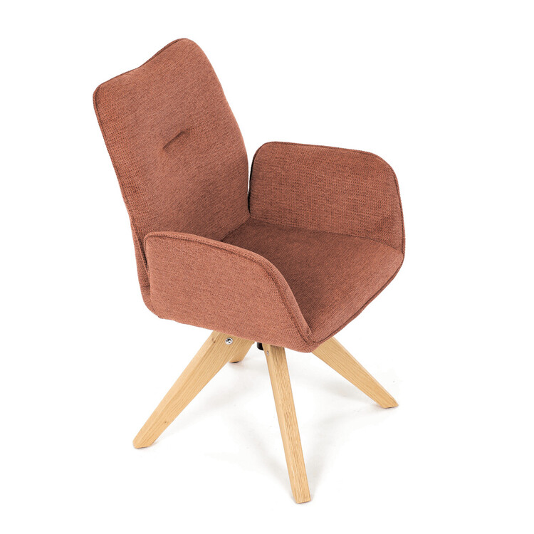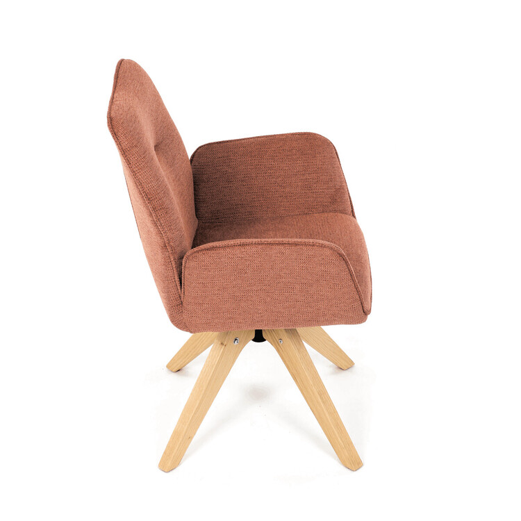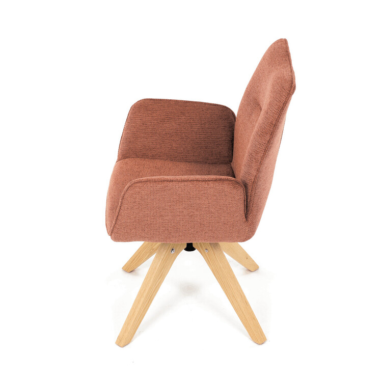 Stylová jídelní židle značky Autronic v moderním designu, která kombinuje komfort a eleganci. Její pohodlný sedák i opěrák jsou čalouněny voděodolnou látkou v příjemném oranžovém odstínu, což z ní činí skvělý doplněk do jakéhokoliv interiéru. Masivní dřevěné nohy v přírodní barvě dodávají židli stabilitu a odolnost, zatímco otočný mechanismus s funkcí 360° přináší uživatelský komfort. Tato jídelní židle je ideální nejen do domácností, ale také do kaváren či restaurací, kde je požadován moderní a funkční nábytek.