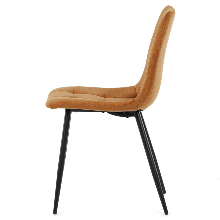 Jídelní židle s označením DCL-X7015 YEL2 kombinuje pohodlí a moderní design díky sametové látce v teplém žlutém odstínu, která je zdobena designovým prošitím na sedáku i opěradle. Pevná kovová podnož v černé barvě zajišťuje stabilitu a dlouhou životnost, přičemž její jednoduché nohy dodávají židli lehkost a vzdušnost. Židle nemá područky ani otočný mechanismus, což ji činí vhodnou pro jídelní prostory s omezeným prostorem. Sametový potah je příjemný na dotek a snadno se udržuje, což přispívá k praktickému využití v domácnostech i komerčních provozech. Rozměry a nosnost odpovídají standardům pro jídelní sezení, čímž je židle ideální volbou pro každodenní použití.