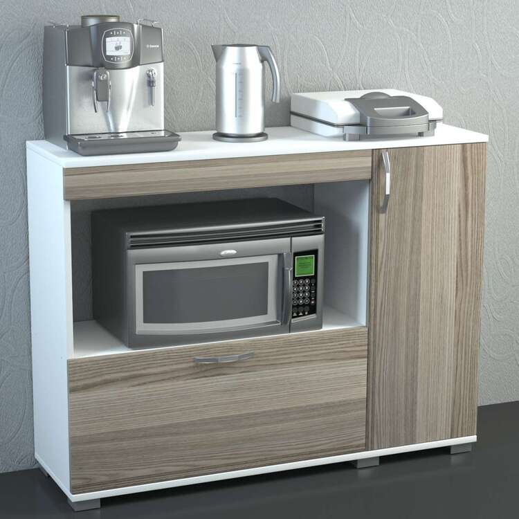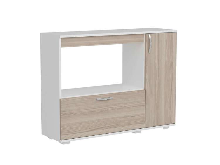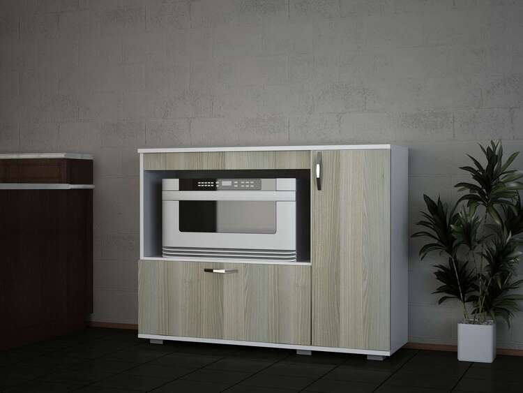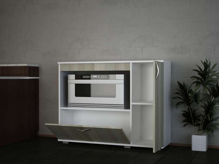 Vylepšete svou kuchyni s elegantní a praktickou skříňkou na mikrovlnku. Tato moderní skříňka kombinuje bílou a světle hnědou barvu, což ji činí stylovým a funkčním doplňkem pro každý kuchyňský prostor.