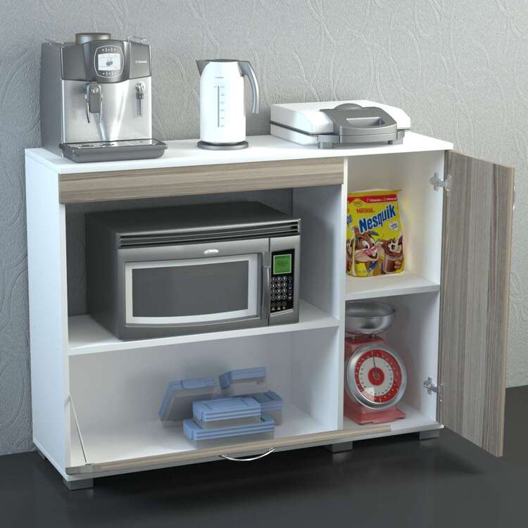 Skříňka poskytuje dostatek úložného prostoru nejen pro mikrovlnnou troubu, ale i pro další kuchyňské potřeby. Vyrobena z kvalitního materiálu LTD s tloušťkou 18 mm zajišťuje dlouhou životnost a odolnost. Kombinace bílé a světle hnědé barvy dodává skříňce moderní a svěží vzhled, který se snadno integruje do jakéhokoliv kuchyňského prostředí.