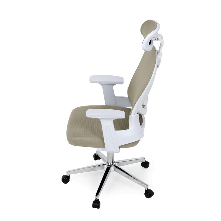 Moderní kancelářská židle značky Autronic v elegantní béžové barvě kombinuje komfort a funkčnost pro každodenní práci. Sedák i opěrák jsou potaženy prodyšnou síťovinou, která zajišťuje optimální cirkulaci vzduchu a pohodlí i při delším sezení. Nastavitelné 2D područky umožňují individuální přizpůsobení podle potřeby. Stabilitu a pevnost zajišťuje chromový kříž s kolečky vhodnými na tvrdé podlahy, které umožňují plynulý pohyb. Stylová a praktická volba pro kanceláře i domácí pracovny.
