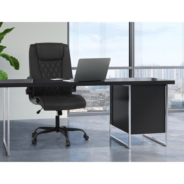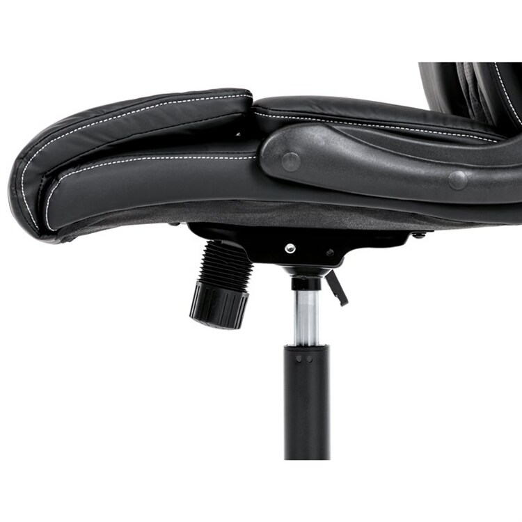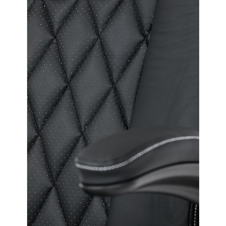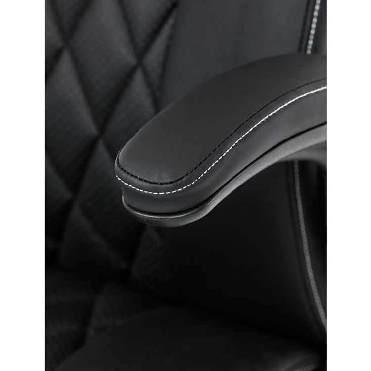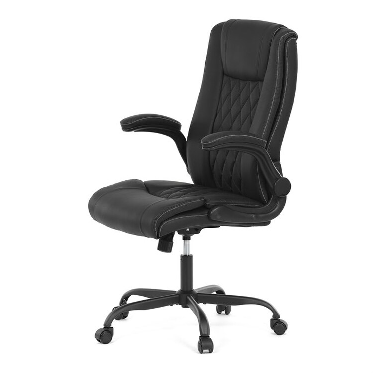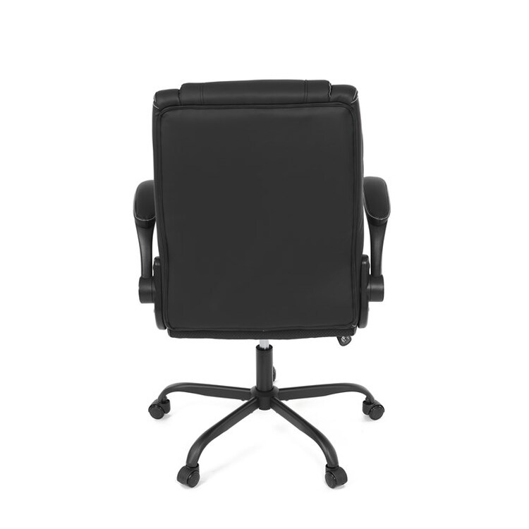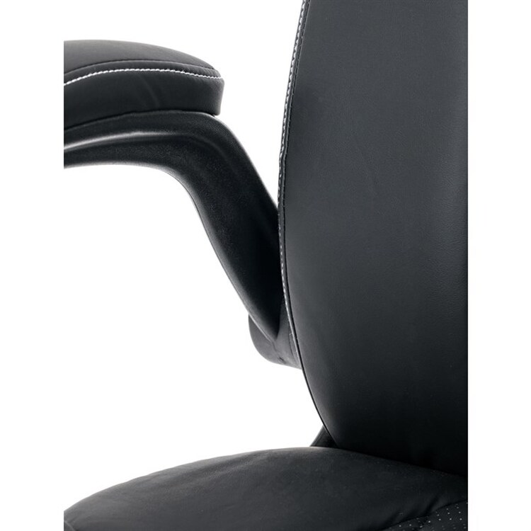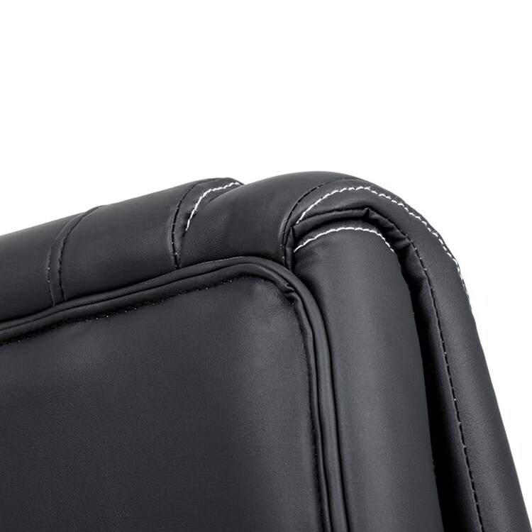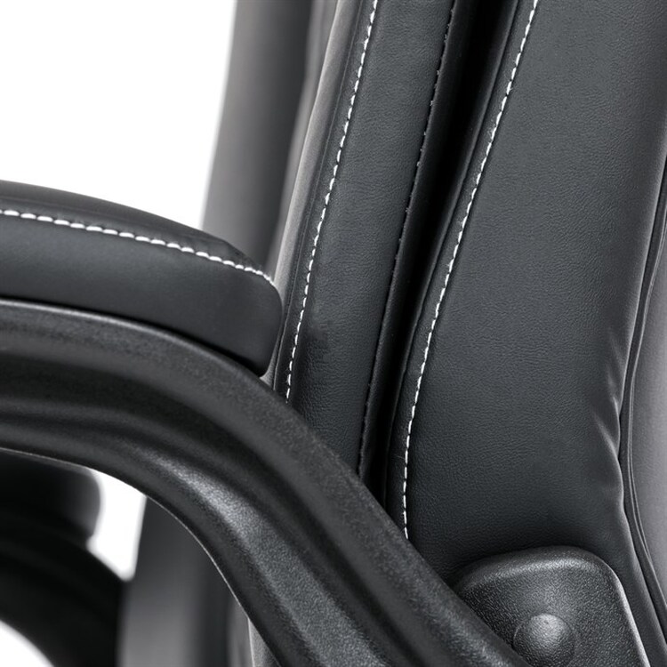 Elegantní kancelářské křeslo značky Autronic kombinuje pohodlí a moderní industriální design. Čalounění z hladké černé ekokůže působí profesionálně a snadno zapadne do jakéhokoliv kancelářského prostředí. Ozdobné prošití opěrky dodává celku stylový detail. Díky houpacímu mechanismu, výškovému nastavení a odklápěcím područkám nabízí křeslo flexibilitu při každodenním používání. Stabilní kovový kříž a kolečka vhodná na tvrdé povrchy zajišťují plynulý pohyb i dlouhou životnost. Ideální volba pro moderní kancelář s důrazem na komfort.