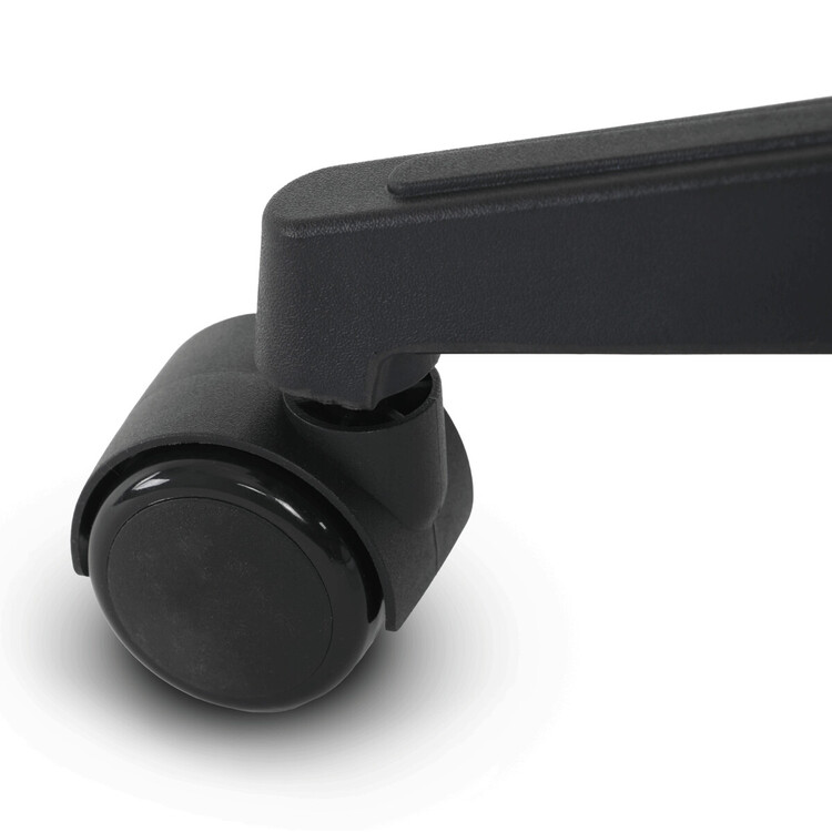 Kancelářská židle s černým mesh potahem nabízí vysoký komfort díky synchronnímu mechanismu, který umožňuje plynulé nastavení opěradla v závislosti na pohybu těla. Výškově nastavitelná bederní opěrka a opěrka hlavy podporují správné držení těla během dlouhých hodin sezení. Sedák je čalouněný látkou v jemném světle modrém odstínu s vyměkčenou vrchní částí pro lepší pohodlí. Područky jsou 1D typu s možností jednoduchého vertikálního nastavení, což umožňuje přizpůsobení individuálním potřebám uživatele. Stabilní plastový kříž s kolečky zajišťuje snadnou mobilitu a pevnost celé židle.