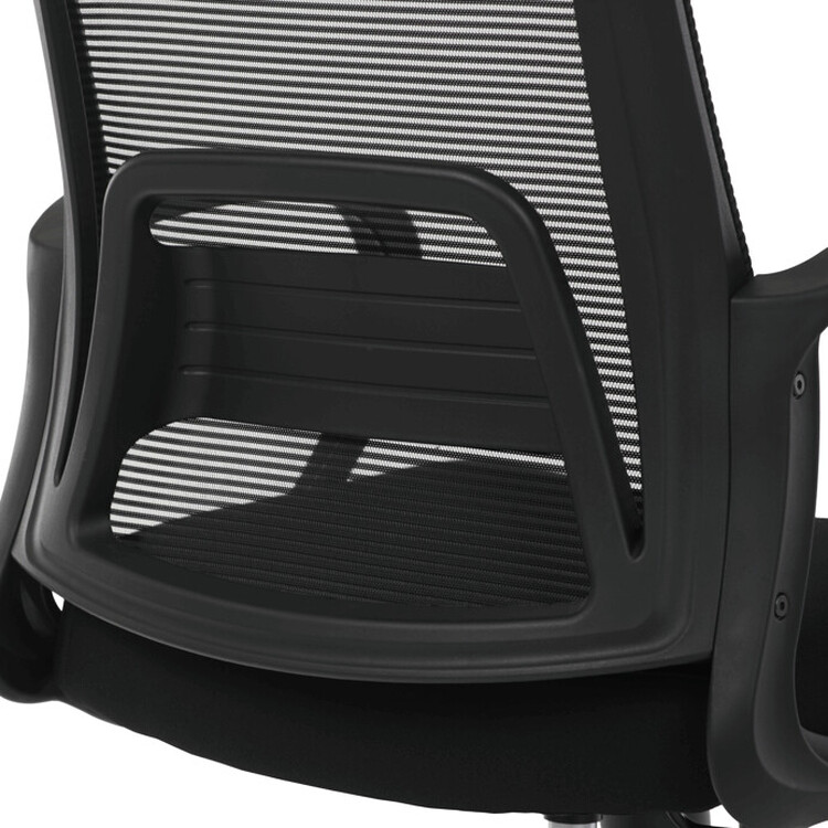 Kancelářská židle s černým síťovaným opěrákem nabízí prodyšné sezení, které podporuje cirkulaci vzduchu během dlouhých pracovních hodin. Pevná bederní opěrka zajišťuje správnou oporu spodní části zad, což přispívá k ergonomii a pohodlí uživatele. Sedák je čalouněný kvalitní látkou v černé... více informací o zboží