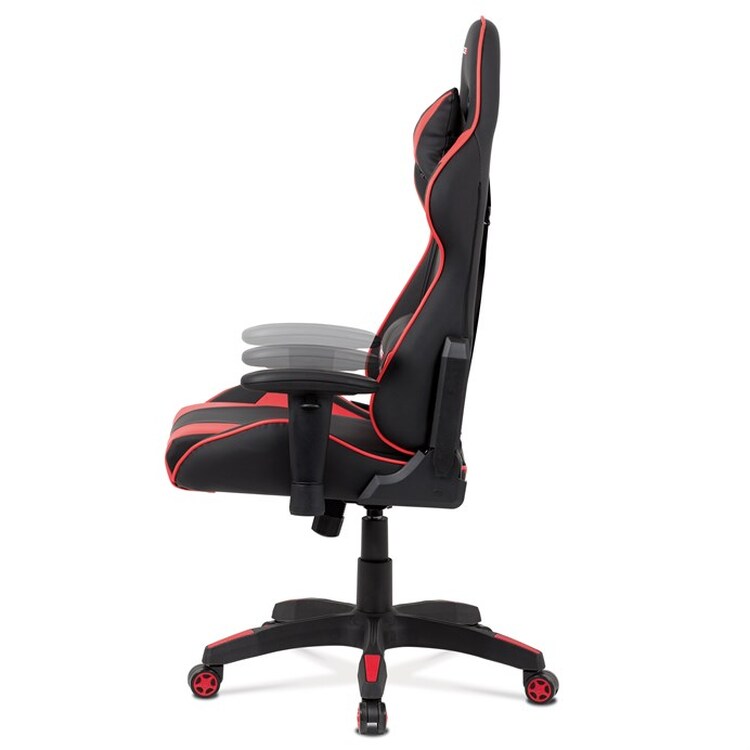 Kancelářská židle KA-F03 RED je vybavena houpacím mechanismem, který umožňuje plynulé naklápění opěradla v rozsahu od 90° a zajišťuje tak pohodlné sezení i při delší práci. Čalounění z kombinace černé a červené ekokůže nabízí snadnou údržbu a kvalitní zpracování povrchu, který je příjemný na dotek a odolný vůči běžnému opotřebení. Plastový kříž zajišťuje stabilitu a lehkost celé židle, zatímco 1D područky umožňují nastavení výšky. Výškově nastavitelný sedák přispívá k ergonomii a přizpůsobení individuálním potřebám uživatele. Celková konstrukce je navržena pro dlouhou životnost a komfortní užívání v domácím i kancelářském prostředí.