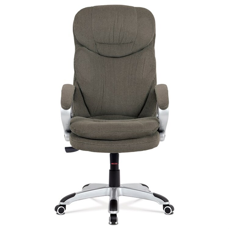 Kancelářská židle s houpacím mechanismem a pevnými čalouněnými područkami nabízí pohodlné sezení v moderním šedém provedení. Sedák i opěradlo jsou potažené kvalitní látkou s designovým prošitím, přičemž vrchní část sedáku je navíc vyměkčená pro zvýšení komfortu. Stabilní kovový kříž zajišťuje pevnou oporu a hladký pohyb na kolečkách vhodných pro různé typy podlah. Výškově nastavitelná židle umožňuje individuální přizpůsobení pracovní pozice, což podporuje ergonomii během dlouhých hodin práce. Absence bederní opěrky a opěrky hlavy je kompenzována tvarováním opěradla, které přispívá k základnímu pohodlí uživatele.