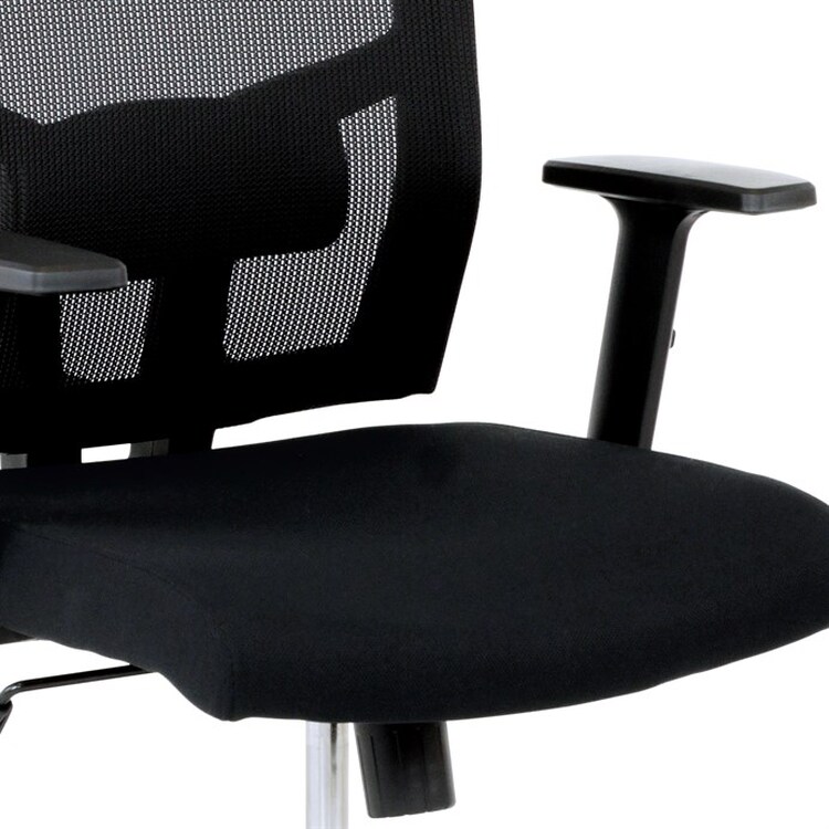 Kancelářská židle KA-B1012 BK je vybavena černým síťovaným opěradlem, které zajišťuje dostatečnou ventilaci během sezení. Sedák je potažený černou látkou, která je příjemná na dotek a snadno se udržuje. Židle disponuje houpacím mechanismem umožňujícím plynulé naklápění s možností aretace v základní poloze, což přispívá k ergonomickému posedu. Bederní opěrka je výškově nastavitelná, čímž podporuje správné držení zad. Područky jsou 1D nastavitelné v jedné ose a kříž je vyroben z pevného plastu s kolečky vhodnými pro různé typy podlah. Výšková nastavitelnost židle umožňuje přizpůsobení individuálním potřebám uživatele.