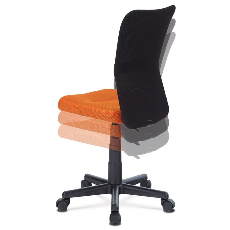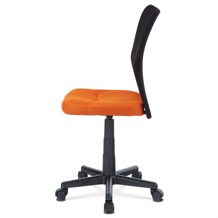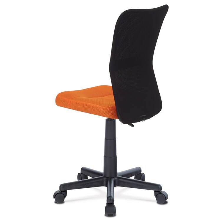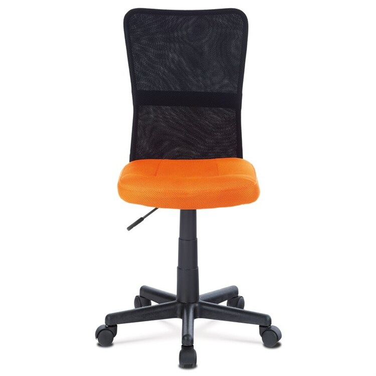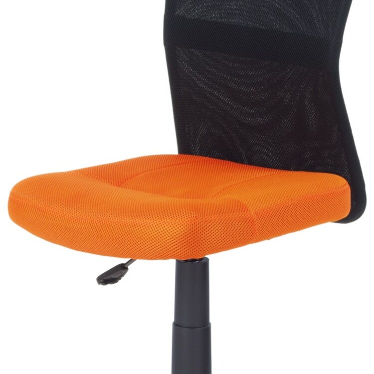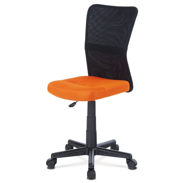 Kancelářská židle s označením KA-2325 ORA nabízí kombinaci funkčnosti a svěžího designu vhodného zejména pro dětské pracovní kouty. Sedák je potažený oranžovou síťovinou, která zajišťuje příjemnou prodyšnost a pohodlí při delším sezení, zatímco opěrák je vyroben z černé síťoviny podporující cirkulaci vzduchu. Výškově nastavitelný mechanismus umožňuje snadné přizpůsobení výšky sedáku individuálním potřebám uživatele. Plastový kříž s pěti rameny je vybaven kolečky pro snadnou mobilitu a zároveň poskytuje stabilní základnu. Absence područek a dalších doplňků podtrhuje jednoduchost a praktičnost tohoto modelu.