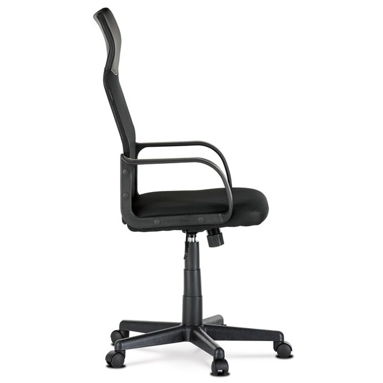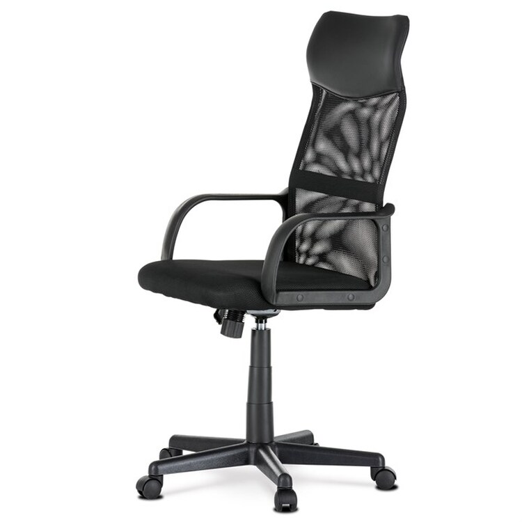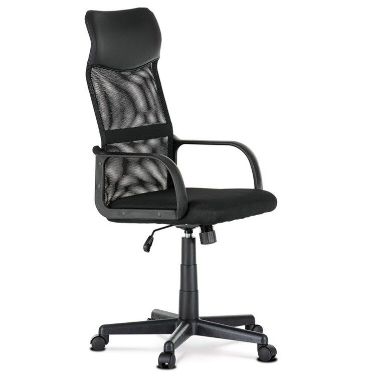 Kancelářská židle KA-L601 BK kombinuje černou ekokůži s prodyšnou síťovinou MESH, která zajišťuje optimální cirkulaci vzduchu během sezení. Pevné područky poskytují stabilní oporu rukám, zatímco houpací mechanismus umožňuje příjemné naklánění s možností nastavení výšky sedáku podle individuálních potřeb. Bederní opěrka podporuje správné držení těla a přispívá k pohodlí při dlouhodobém používání. Plastový kříž s kolečky zajišťuje lehkou mobilitu a stabilitu celé židle. Design v černé barvě je vhodný do moderních kancelářských prostor.