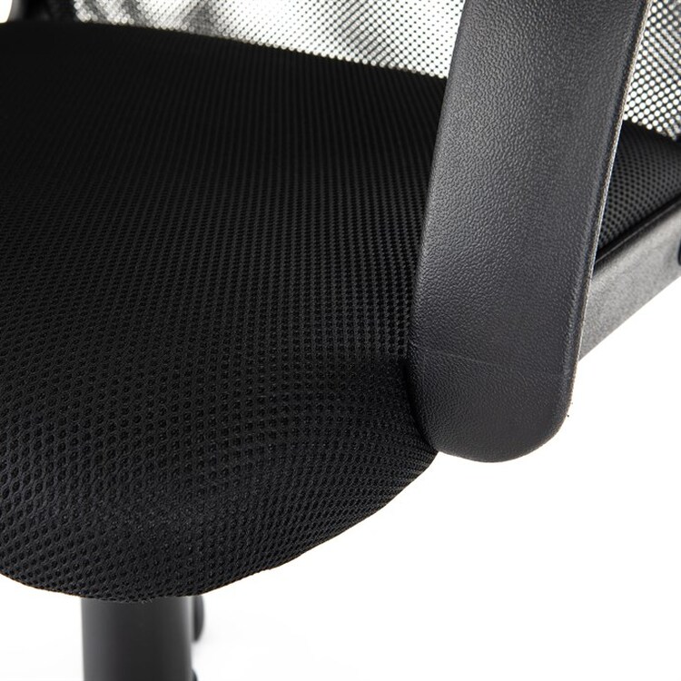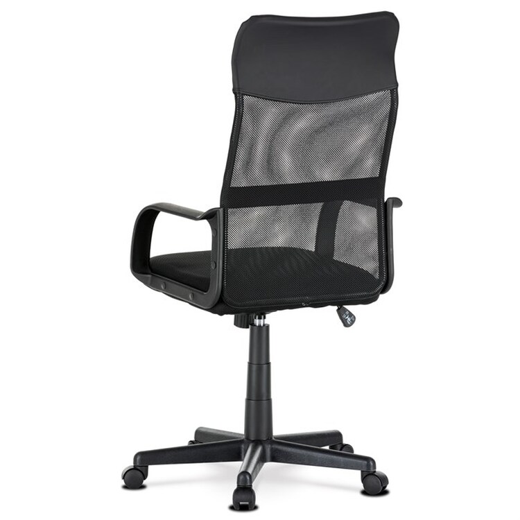 Kancelářská židle KA-L601 BK kombinuje černou ekokůži s prodyšnou síťovinou MESH, která zajišťuje optimální cirkulaci vzduchu během sezení. Pevné područky poskytují stabilní oporu rukám, zatímco houpací mechanismus umožňuje příjemné naklánění s možností nastavení výšky sedáku podle... více informací o zboží