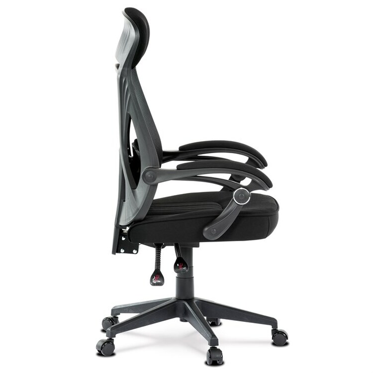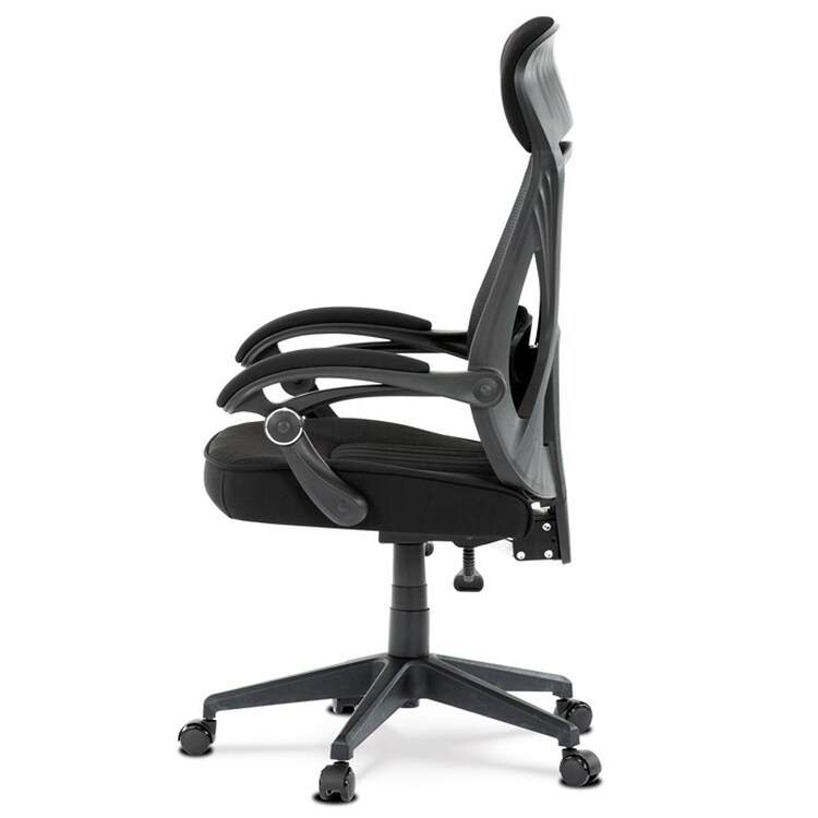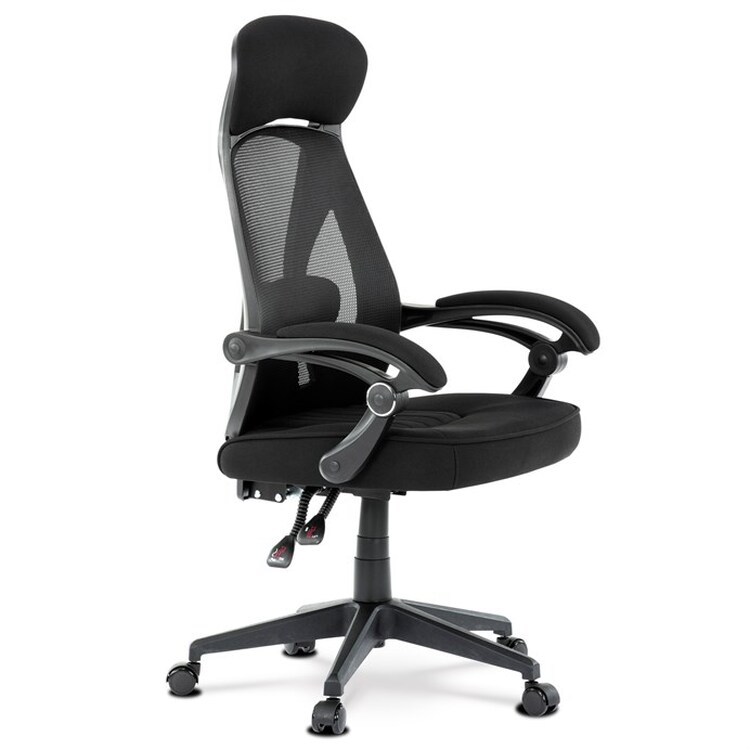 Kancelářská židle s označením KA-Y309 BK kombinuje černou látku a prodyšnou černou síťovinu MESH, která zajišťuje optimální ventilaci během sezení. Pevné čalouněné područky doplňují ergonomicky tvarovaný sedák s extra velikostí pro pohodlné posezení i delší dobu. Houpací mechanismus s možností aretace umožňuje nastavení polohy opěradla podle individuálních potřeb, zatímco posuvná bederní opěrka vertikálně podporuje správné držení těla. Plastový kříž s pěti rameny je vybaven kolečky pro snadný pohyb po kancelářském prostoru. Výškově nastavitelná židle je vhodná pro široké spektrum uživatelů, kteří ocení kombinaci funkčnosti a komfortu.