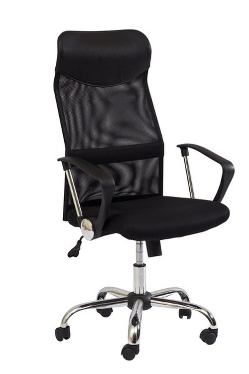 Otáčecí kancelářská židle, kovový podstavec je pochromovaný, čalounění a síťovaná membránová tkanina se vyrábí ve více barevných provedeních. Sedák a část opěradla je z membránové tkaniny černé barvy, další část opěradla je ze síťky. Nastavitelná výška sedadla je v rozmezí 45 – 53 cm.CASA... více informací o zboží