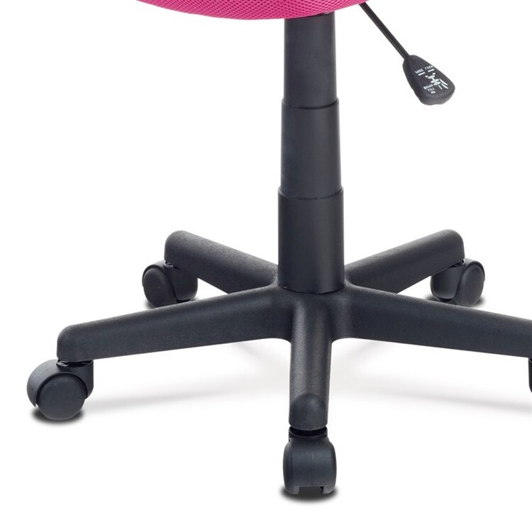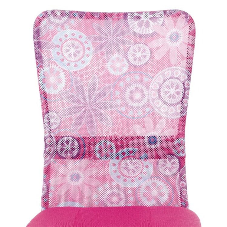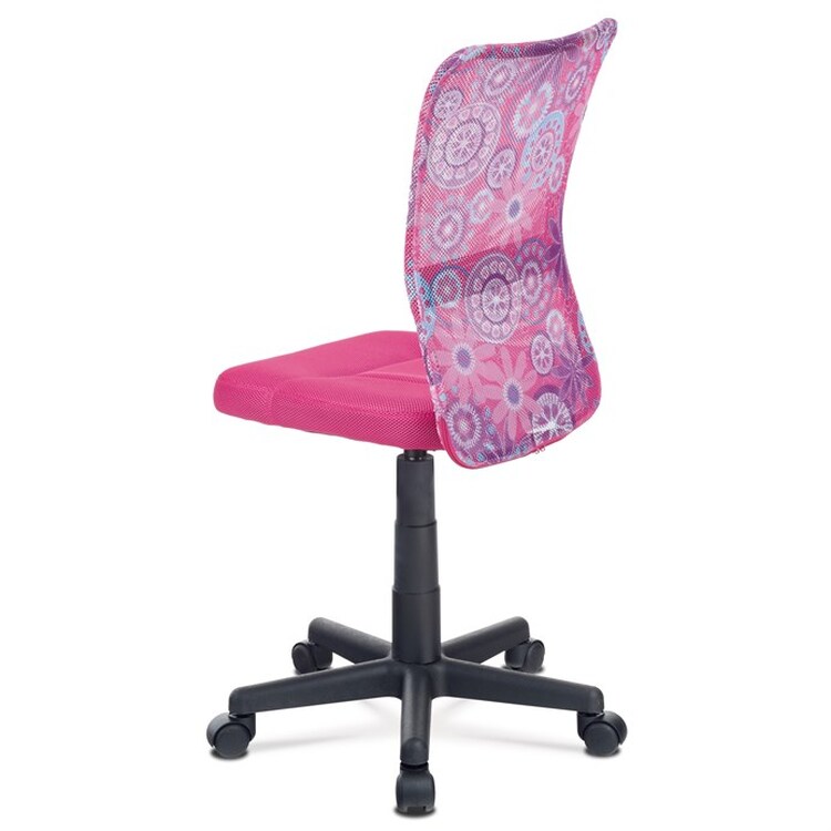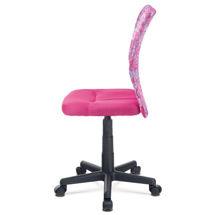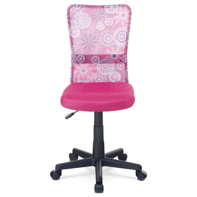 Kancelářská židle KA-2325 PINK je navržena především pro děti a mladistvé, kteří ocení její svěží růžové provedení a motiv na prodyšném síťovaném opěráku. Sedák je potažený růžovou mesh látkou, která zajišťuje pohodlí a dostatečnou ventilaci během sezení. Plastový kříž s pěti rameny poskytuje stabilní základnu a je osazen kolečky vhodnými pro hladké povrchy. Výškově nastavitelný mechanismus umožňuje snadné přizpůsobení výšky sedáku individuálním potřebám uživatele. Absence područek a bederní opěrky zajišťuje jednoduchý design a volnost pohybu, což je ideální pro dětské pracovní nebo studijní kouty.