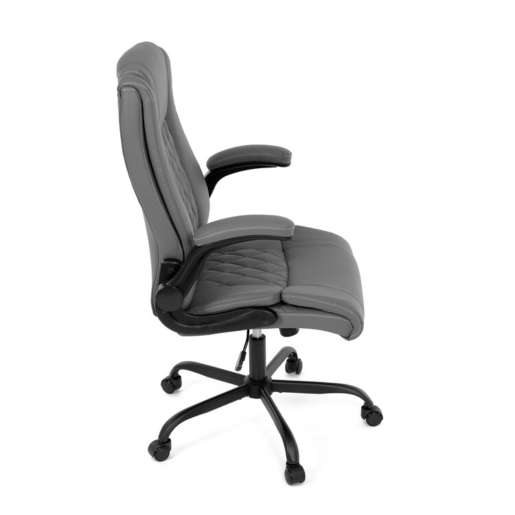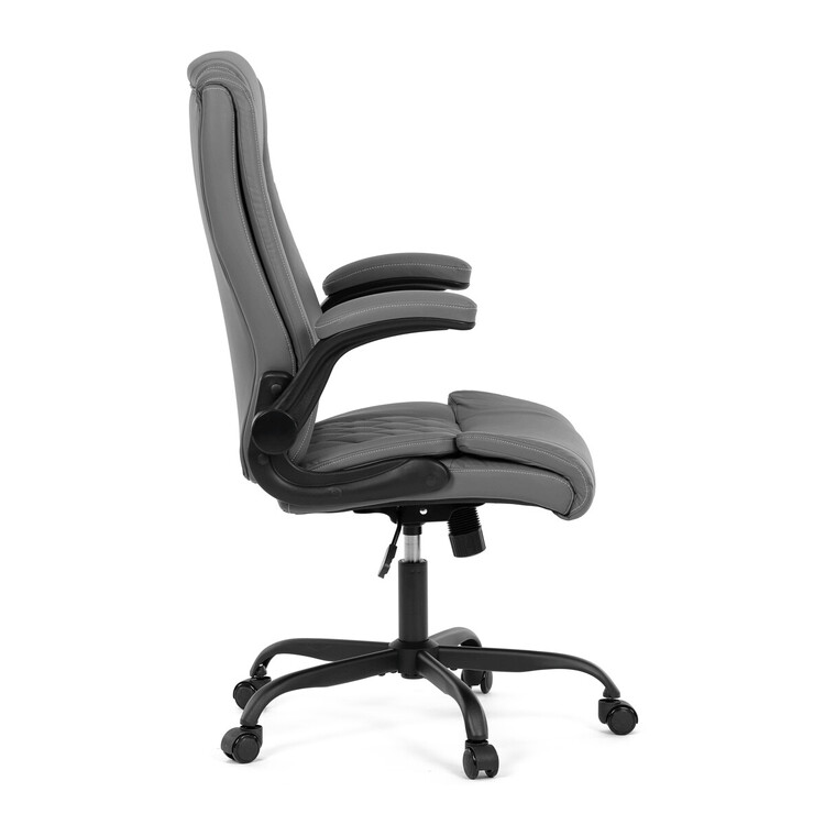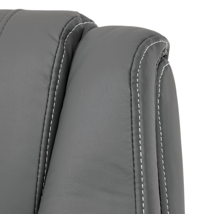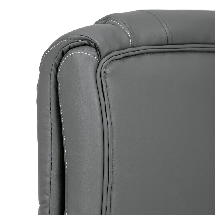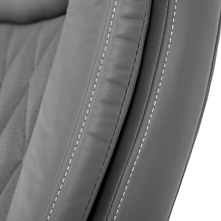 Elegantní kancelářské křeslo značky Autronic kombinuje pohodlí a moderní industriální design. Čalounění z hladké šedé ekokůže působí profesionálně a snadno zapadne do jakéhokoliv kancelářského prostředí. Ozdobné prošití opěrky dodává celku stylový detail. Díky houpacímu mechanismu, výškovému nastavení a odklápěcím područkám nabízí křeslo flexibilitu při každodenním používání. Stabilní kovový kříž a kolečka vhodná na tvrdé povrchy zajišťují plynulý pohyb i dlouhou životnost. Ideální volba pro moderní kancelář s důrazem na komfort.