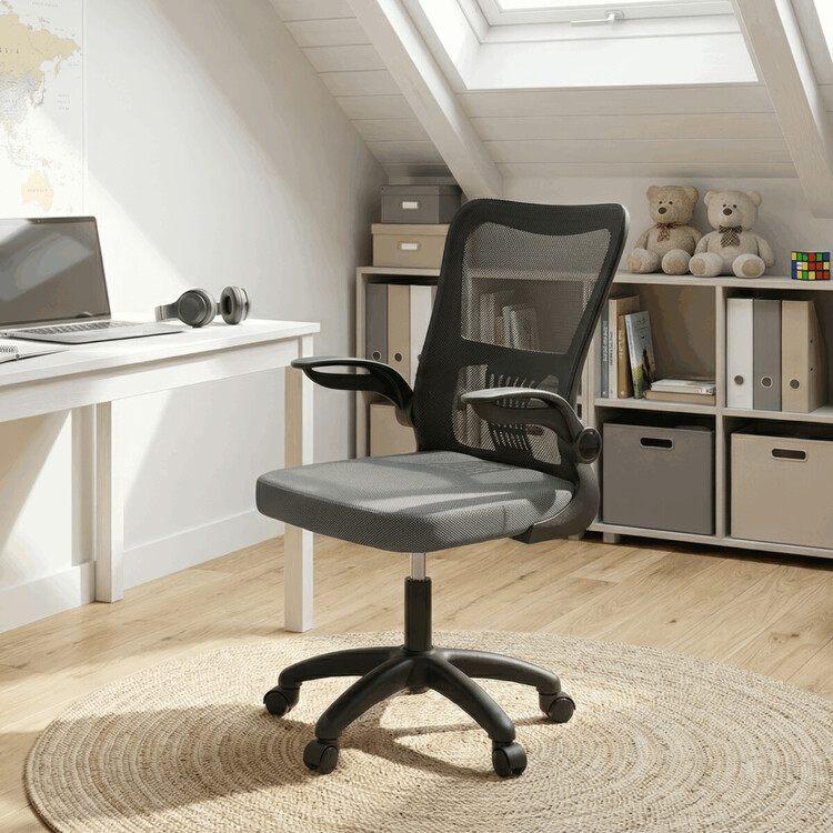 Kancelářská židle s označením KA-K2006 GREY nabízí komfortní sezení díky kombinaci šedé síťoviny a černého plastu. Prodyšný opěrák zajišťuje optimální cirkulaci vzduchu, což přispívá k příjemnému pocitu i při delším používání. Odklápěcí područky umožňují snadné přizpůsobení pracovnímu prostoru a usnadňují zasunutí židle pod stůl. Houpací mechanismus podporuje dynamické sezení a výškově nastavitelný sedák umožňuje individuální nastavení výšky podle potřeby uživatele. Plastový kříž s kolečky je určený pro tvrdé povrchy, čímž zajišťuje stabilitu a snadnou mobilitu židle. Integrovaná bederní opěrka přispívá k ergonomii a podpoře spodní části zad.
