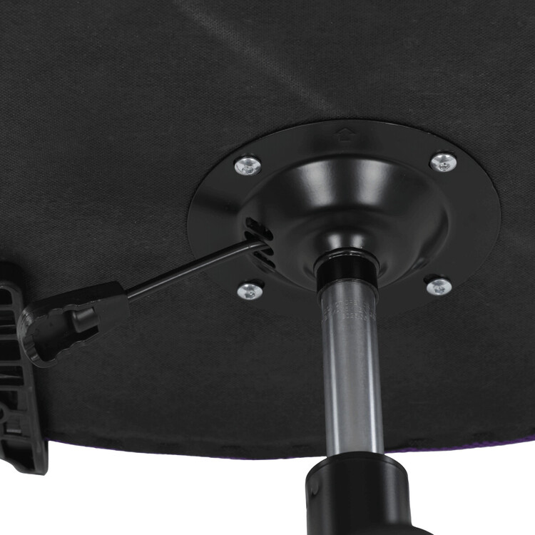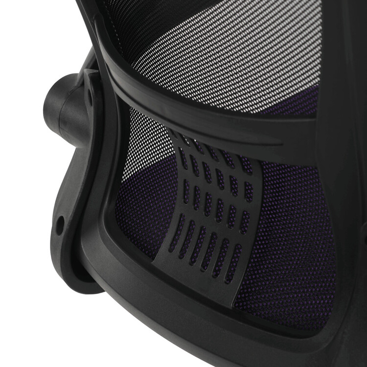 Kancelářská židle s označením KA-K2006 PUR nabízí komfortní sezení díky širokému sedáku potaženému fialovou látkou a prodyšnému opěráku z černé síťoviny, který zajišťuje optimální cirkulaci vzduchu během práce. Odklápěcí plastové područky umožňují snadné přizpůsobení prostoru a usnadňují zasunutí židle pod stůl. Židle je vybavena houpacím mechanismem s možností nastavení výšky sedáku, což přispívá k ergonomii a individuálnímu nastavení podle potřeb uživatele. Bederní opěrka integrovaná v opěráku podporuje správné držení těla a snižuje únavu zad. Stabilní plastový kříž s kolečky určenými pro tvrdé povrchy zajišťuje mobilitu a bezpečné používání na různých typech podlah.