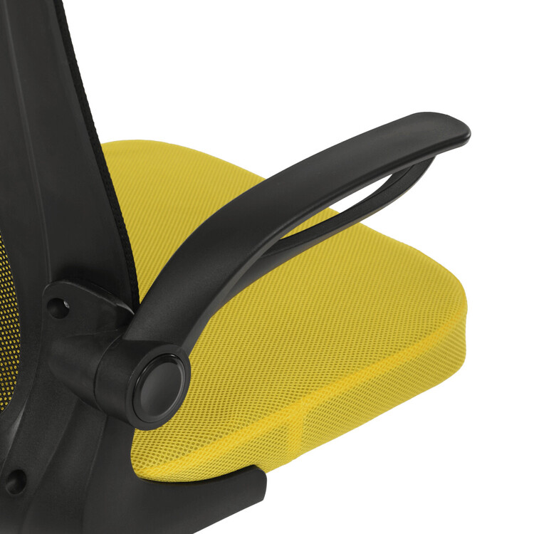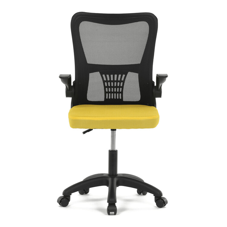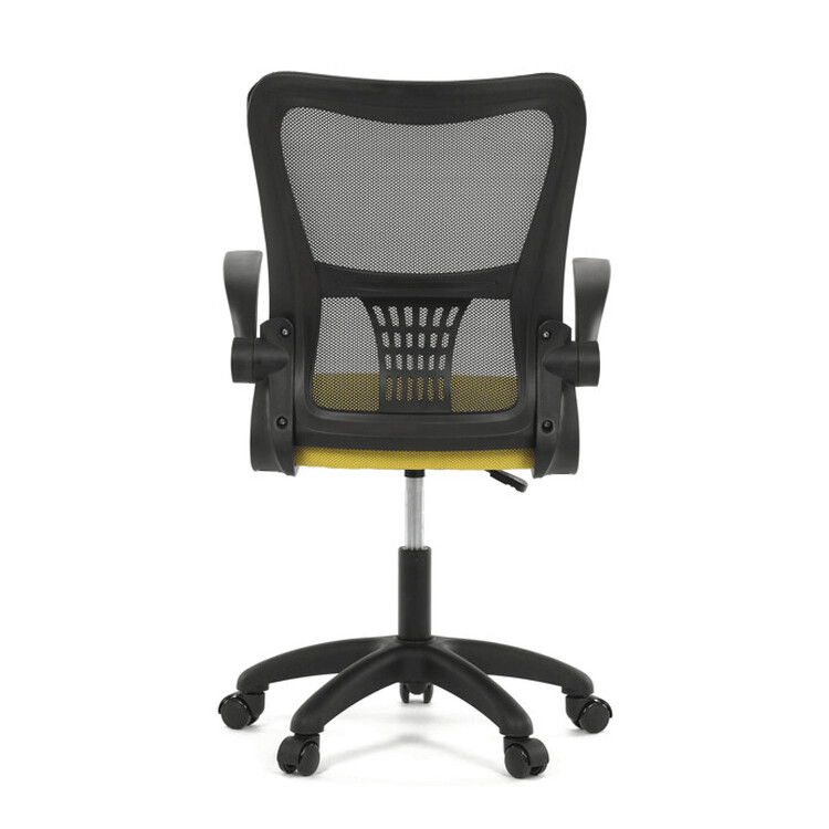 Kancelářská židle s označením KA-K2006 YEL nabízí kombinaci moderního designu a funkčnosti vhodnou pro každodenní práci. Opěrák je vyroben z černé prodyšné síťoviny, která zajišťuje optimální cirkulaci vzduchu a podporuje pohodlí během dlouhého sezení. Sedák je potažen žlutou látkou, která přináší živý barevný akcent a je vyplněn komfortní pěnou. Odklápěcí plastové područky umožňují snadné přizpůsobení prostoru a lepší manipulaci s židlí. Houpací mechanismus s možností nastavení výšky sedáku přispívá k ergonomickému sezení, zatímco pevný plastový kříž zajišťuje stabilitu a odolnost. Židle je určena pro použití na tvrdých površích díky kolečkům přizpůsobeným tomuto typu podlahy.