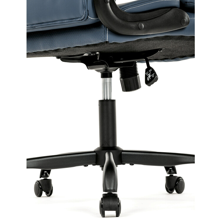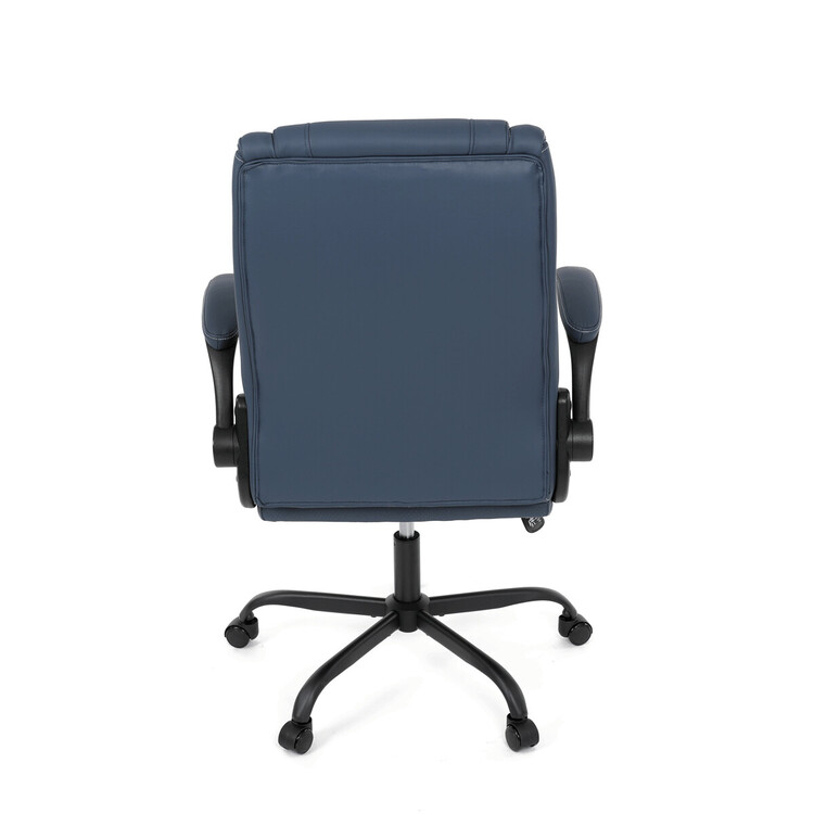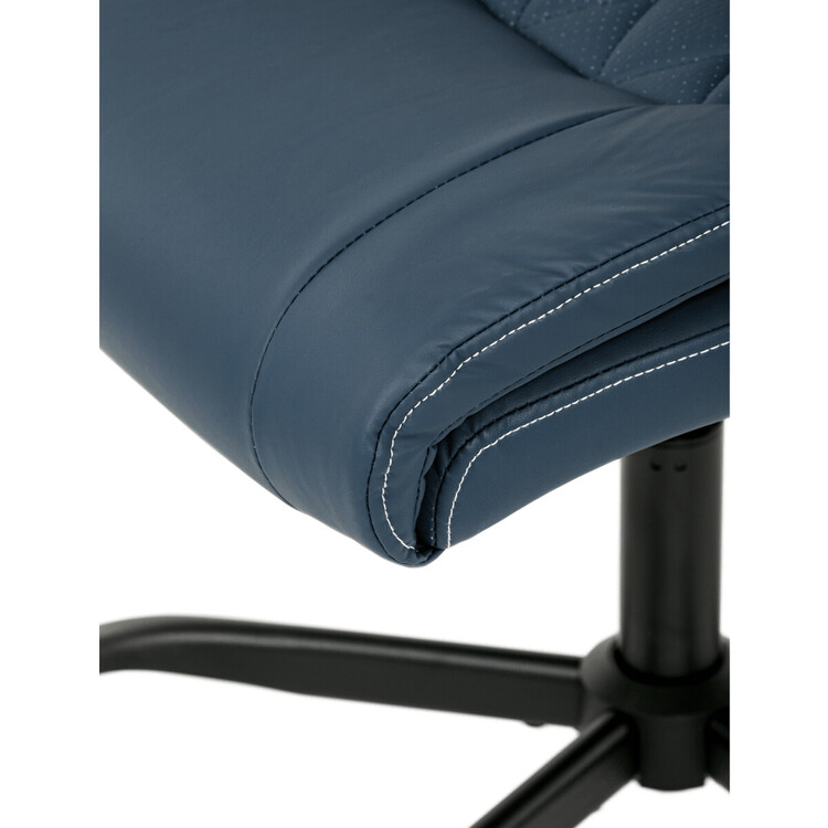 Elegantní kancelářské křeslo značky Autronic kombinuje pohodlí a moderní industriální design. Čalounění z hladké modré ekokůže působí profesionálně a snadno zapadne do jakéhokoliv kancelářského prostředí. Ozdobné prošití opěrky dodává celku stylový detail. Díky houpacímu mechanismu, výškovému nastavení a odklápěcím područkám nabízí křeslo flexibilitu při každodenním používání. Stabilní kovový kříž a kolečka vhodná na tvrdé povrchy zajišťují plynulý pohyb i dlouhou životnost. Ideální volba pro moderní kancelář s důrazem na komfort.