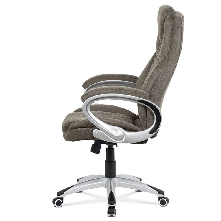 Moderní kancelářská židle potažená pololesklou šedou látkou vzor pepito. Díky ultra pohodlnému sedáku a opěráku s výjimečným polstrováním, které jsou stylově tvarované, s elegantním prošitím a se super měkkým podhlavníkem se budete cítit jako v business class nejlepší letecké společnosti. Ruce si můžete pohodlně opřít o pevné plastové područky šedé barvy s černými plastovými doplňky a polstrováním potaženým extra jemnou látkou. Židle má také i snadno omyvatelný, tvrzený, plastový kříž stříbrné barvy s černými protiskluzovými prvky a plastovými kolečky vhodnými na tvrdé typy podlah (dlažba, parkety, plovoucí podlahy apod.). Je výškově nastavitelná, s houpacím mechanismem a předním šroubem upravujícím tuhost pohupu a její nosnost je až 120 kg.Látku čistit výhradně šamponováním běžnými čistícími prostředky za použití měkkého materiálu (houbička, hadřík). Nečistit hrubými materiály (kartáč, apod.). Nikdy nepoužívat chemická rozpouštědla. Látku nevystavujte přímému slunečnímu záření. Veškeré nečistoty je třeba odstraňovat ihned po ušpinění. Pozdním čištěním se úspěšnost zákroku výrazně snižuje. Látku nevystavujte přímému slunečnímu záření.