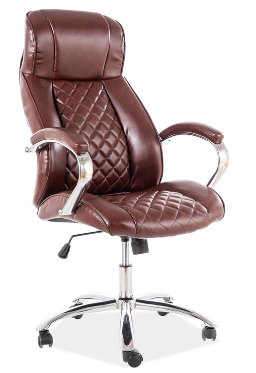 Luxusní otáčecí kancelářské křeslo s možností nastavení výšky sedadla. Podstavec a opěrky jsou z kovu, čalounění je vyrobené z velmi kvalitní ekokůže v hnědé barvě. Výška sedadla je v rozmezí 47 – 54 cm, celková výška je 118 – 126 cm.CASA 11830