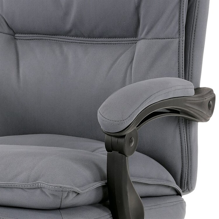 Luxusní kancelářské křeslo z kolekce TOP manager.Jedná se o moderní designové křeslo, navržené pro náročnou kancelářskou práci nebo jen relaxační lenošení. Jemný šedý odstín potahové látky doplní jakýkoli interiér, takže je univerzálním doplňkem do každé kanceláře.Výplň dvojitého sedáku i vysokého opěráku je z velmi kvalitní PU pěny.Křeslo je vybaveno houpacím mechanismem s plynulou aretací. Při vypnutí aretace je možné s opěradlem volně pohupovat.Područky jsou plastové, z vrchní části polstrované. Jedinečnost područek spočívá v synchronní mechanice, která upravuje jejich polohu při polohování opěráku. Vaše ruce budou mít při odpočinku dokonalou a velmi měkkou podporu. Jako TOP vybavení slouží výsuvná a výklopná polstrovaná podnožka.Nosnost židle je až 130 kg.Černá kostra područek a podnoží jí dodává nádech elegance a zajišťuje, že v každém prostředí vynikne jako výrazný kousek.