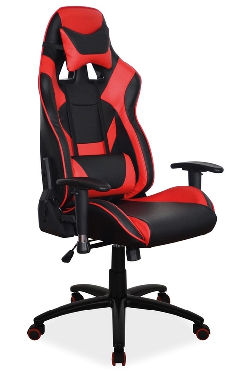 Moderní otáčecí kancelářské křeslo v novodobém designu s možností nastavení výšky sedadla. Čalounění je z ekokůže v barevné kombinaci červená/černá. Výška sedadla je v rozmezí 44 – 52 cm, celková výška je 122 – 130 cm. Nastavitelná výška područek, sklopení opěradla a bederní opěrka pro ten nejvyšší komfort.CASA 11622