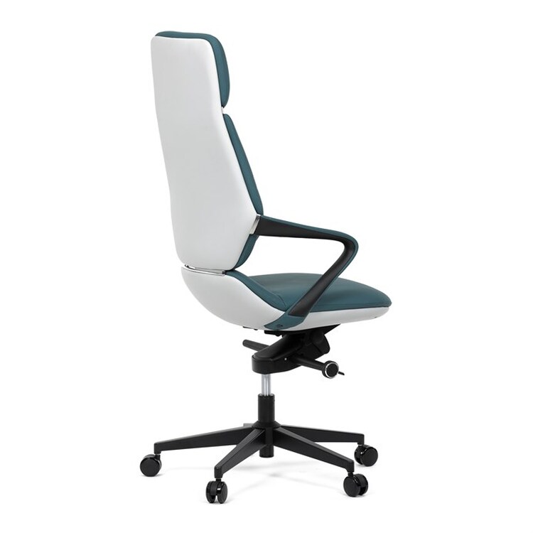 Tyrkysově modré kancelářské křeslo Autronic je skvělou volbou pro každou domácnost nebo pracovní prostor. Potah z kvalitní ekokůže nabízí nejen elegantní vzhled, ale také pohodlí díky pevným područkám. Křeslo je polohovací a vybavené multifunkčním mechanismem, takže si můžete snadno nastavit ideální polohu pro relaxaci. Kovový kříž zajišťuje stabilitu a odolnost. Houpací mechanismus s aretací polohy dodává další úroveň komfortu, kterou oceníte při delším sezení.