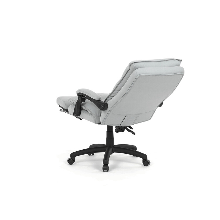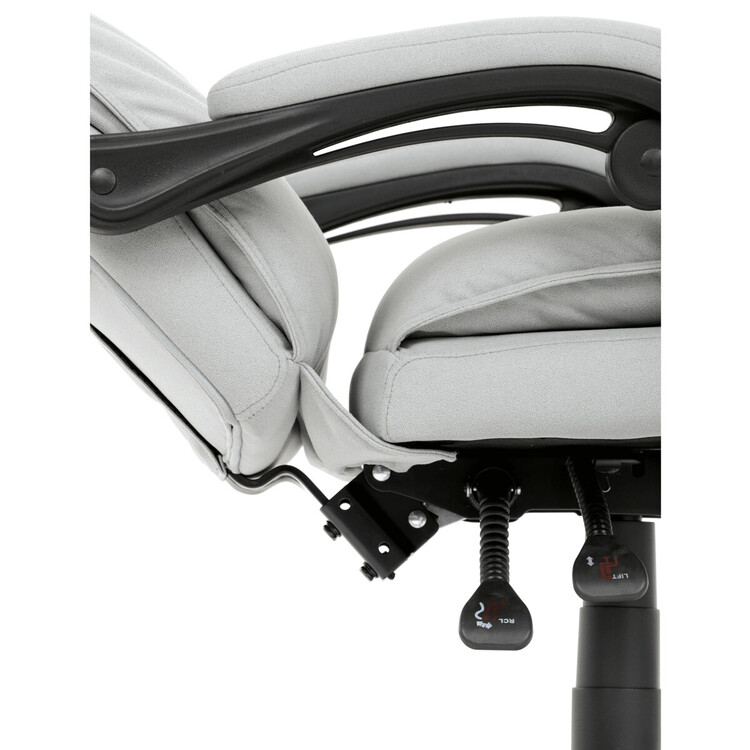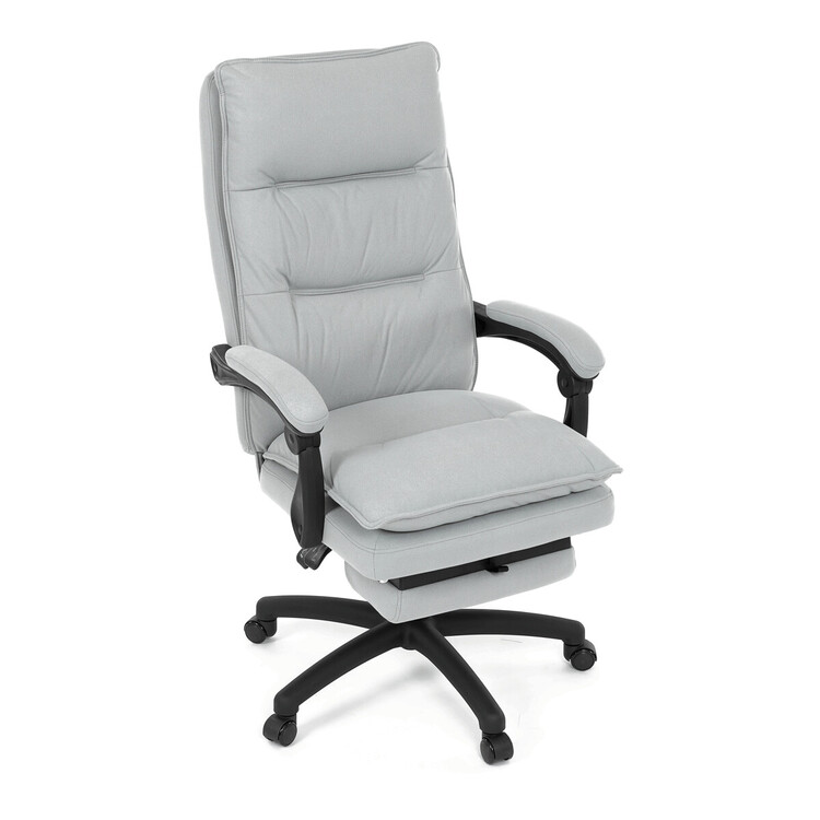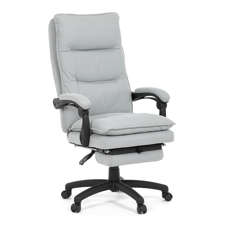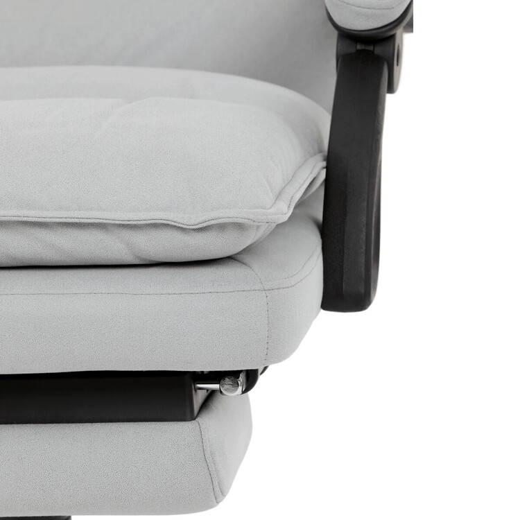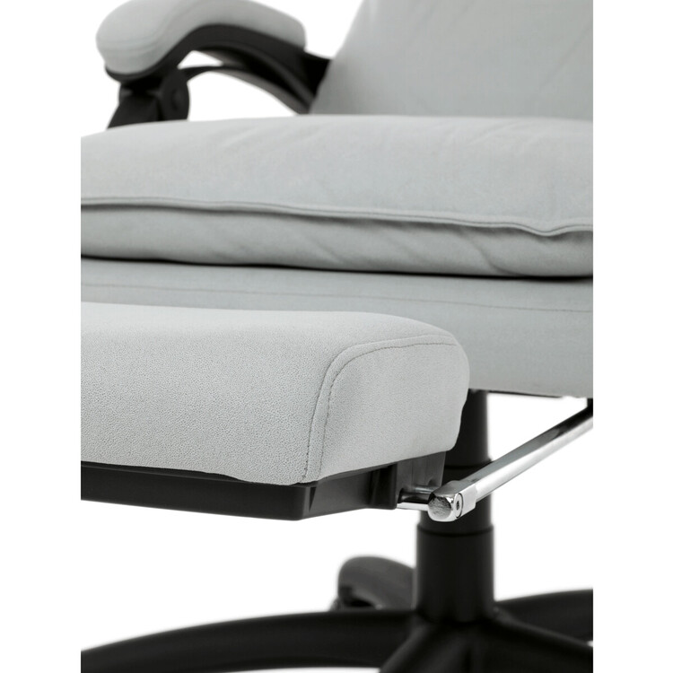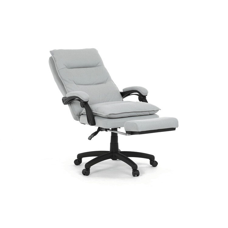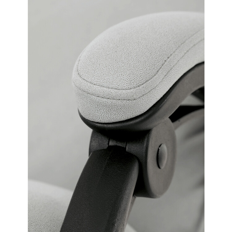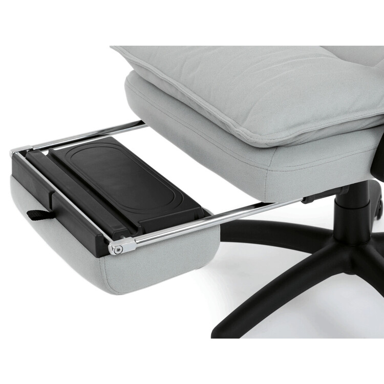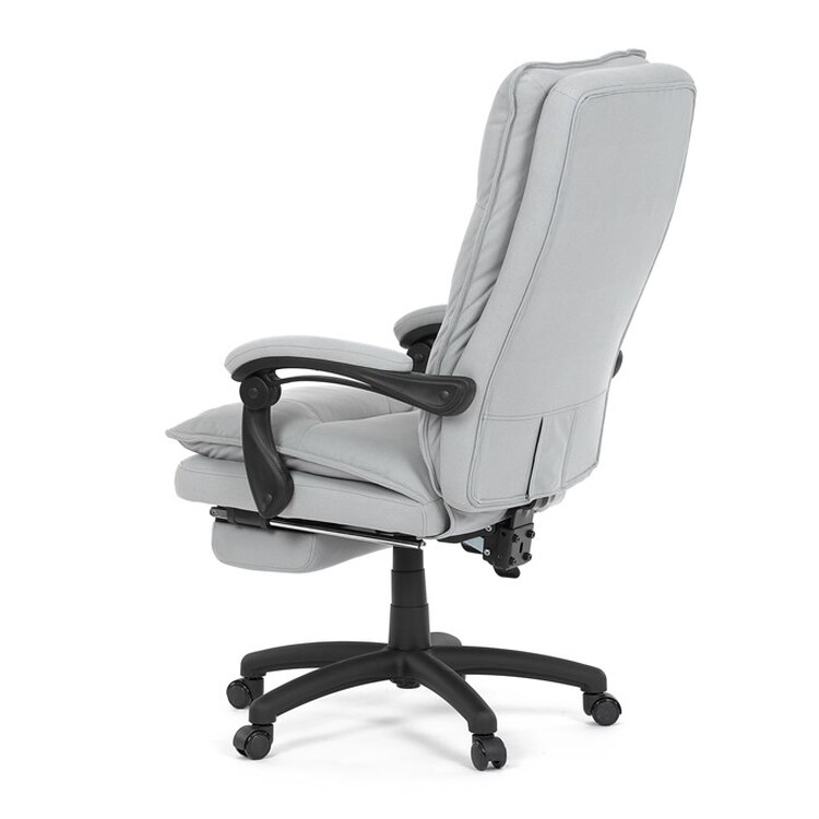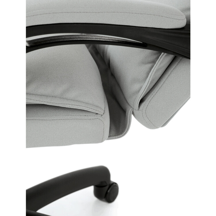 Luxusní kancelářské křeslo z kolekce TOP manager.Jedná se o moderní designové křeslo, navržené pro náročnou kancelářskou práci nebo jen relaxační lenošení. Jemný šedý odstín potahové látky doplní jakýkoli interiér, takže je univerzálním doplňkem do každé kanceláře.Výplň dvojitého sedáku i vysokého opěráku je z velmi kvalitní PU pěny.Křeslo je vybaveno permanent contact mechanismem s plynulou aretací. Při vypnutí aretace je možné s opěradlem volně pohupovat.Područky jsou plastové, z vrchní části polstrované. Jedinečnost područek spočívá v synchronní mechanice, která upravuje jejich polohu při polohování opěráku. Vaše ruce budou mít při odpočinku dokonalou a velmi měkkou podporu. Jako TOP vybavení slouží výsuvná a výklopná polstrovaná podnožka.Nosnost židle je až 130 kg.Černá kostra područek a podnoží jí dodává nádech elegance a zajišťuje, že v každém prostředí vynikne jako výrazný kousek.
