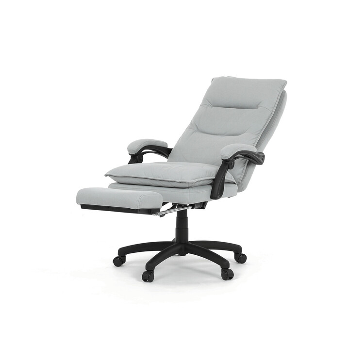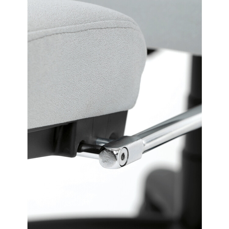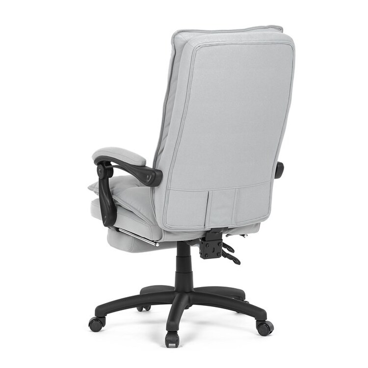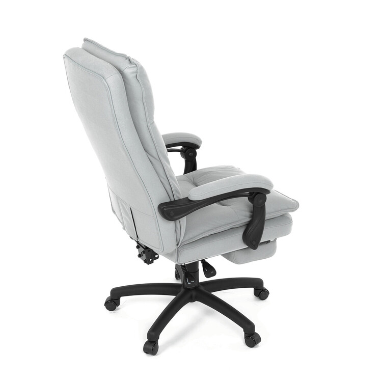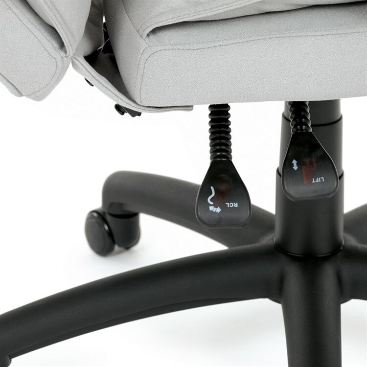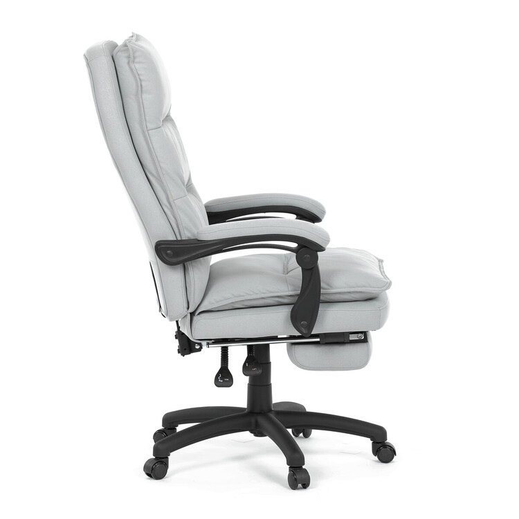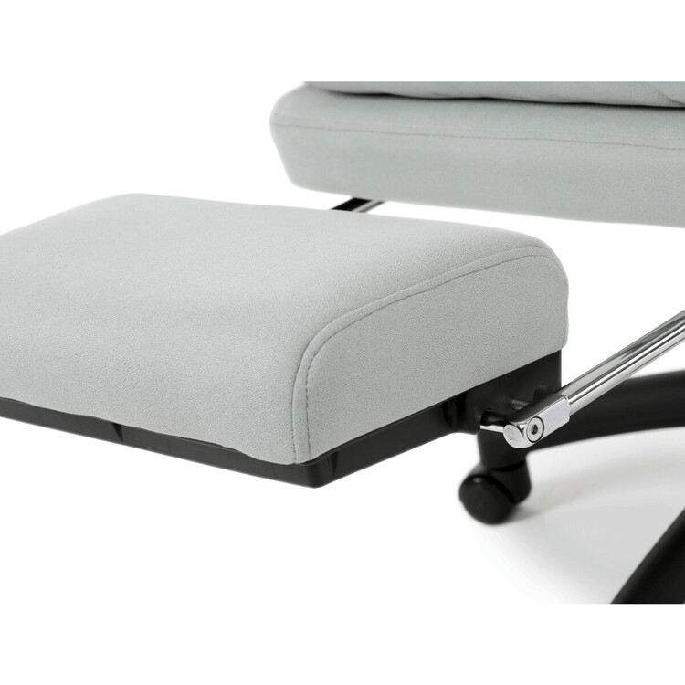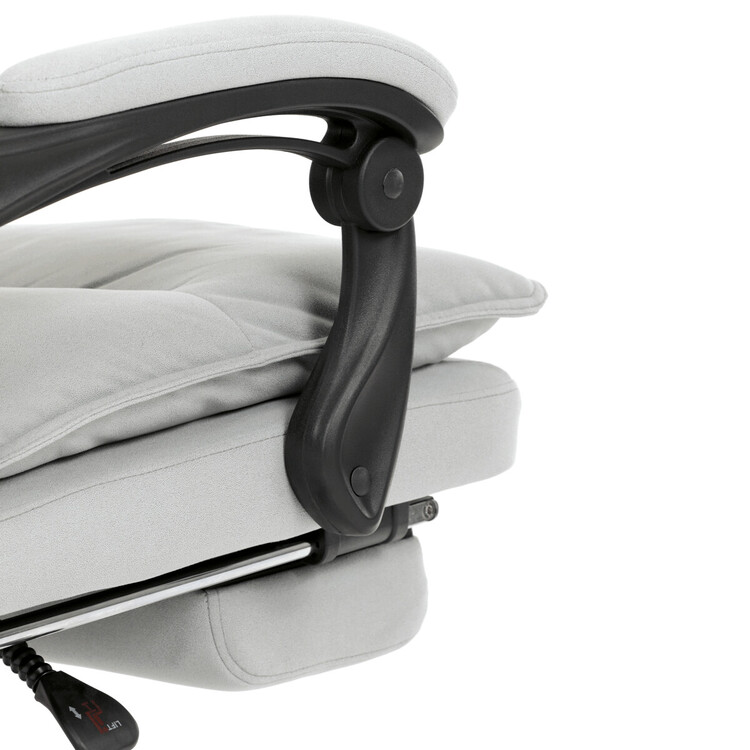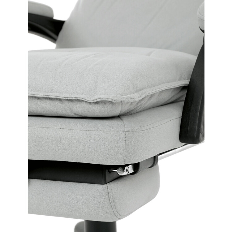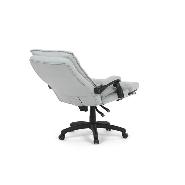 Luxusní kancelářské křeslo z kolekce TOP manager.Jedná se o moderní designové křeslo, navržené pro náročnou kancelářskou práci nebo jen relaxační lenošení. Jemný šedý odstín potahové látky doplní jakýkoli interiér, takže je univerzálním doplňkem do každé kanceláře.Výplň dvojitého sedáku i vysokého opěráku je z velmi kvalitní PU pěny.Křeslo je vybaveno permanent contact mechanismem s plynulou aretací. Při vypnutí aretace je možné s opěradlem volně pohupovat.Područky jsou plastové, z vrchní části polstrované. Jedinečnost područek spočívá v synchronní mechanice, která upravuje jejich polohu při polohování opěráku. Vaše ruce budou mít při odpočinku dokonalou a velmi měkkou podporu. Jako TOP vybavení slouží výsuvná a výklopná polstrovaná podnožka.Nosnost židle je až 130 kg.Černá kostra područek a podnoží jí dodává nádech elegance a zajišťuje, že v každém prostředí vynikne jako výrazný kousek.