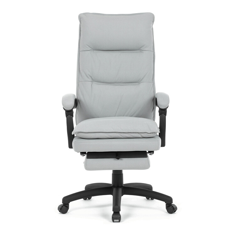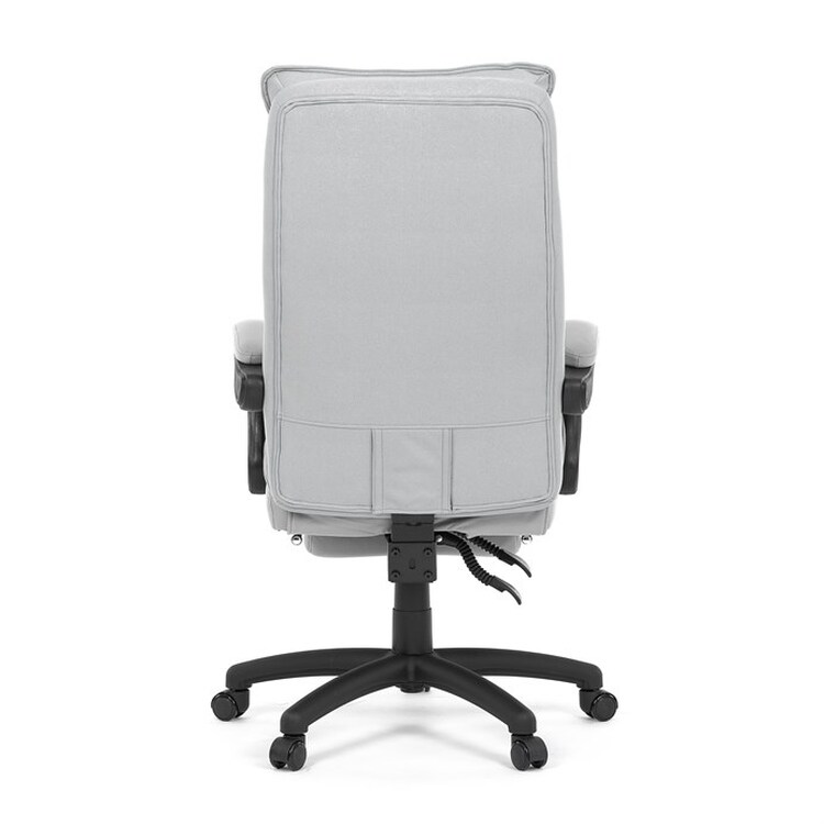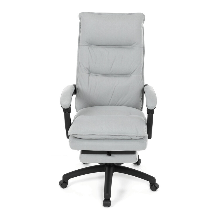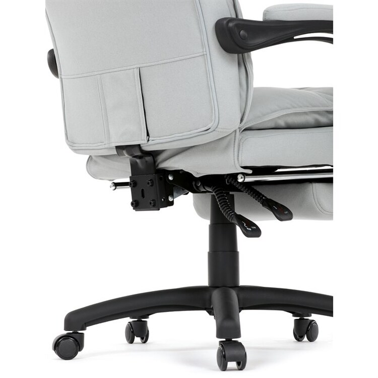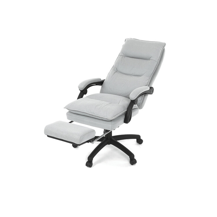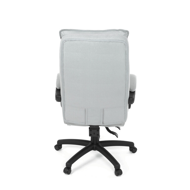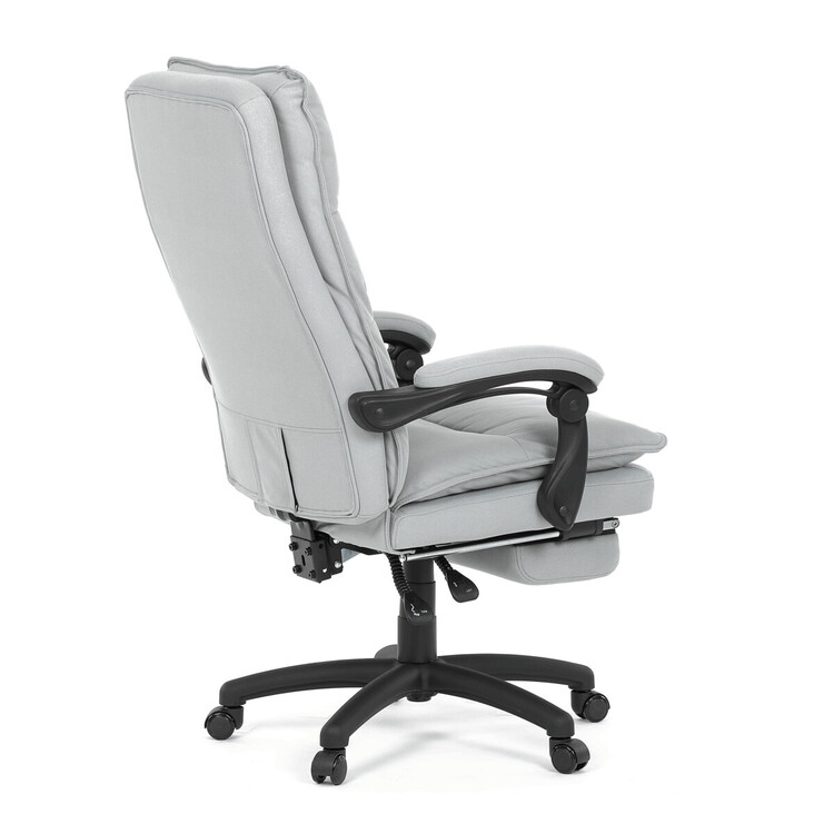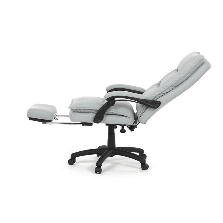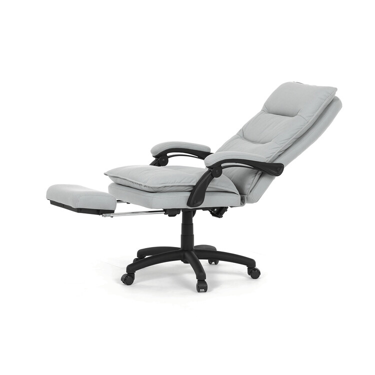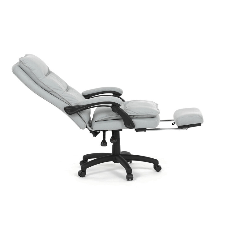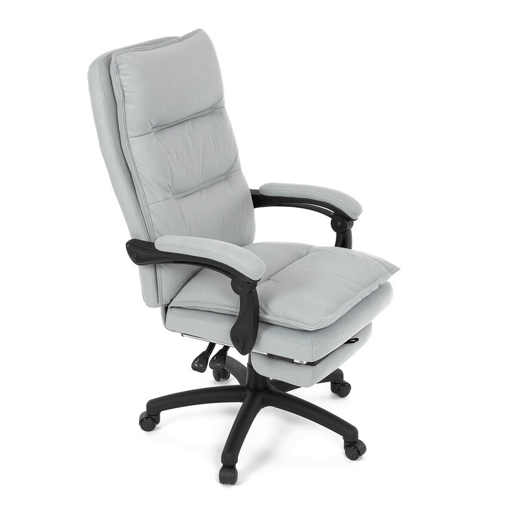Luxusní kancelářské křeslo z kolekce TOP manager.Jedná se o moderní designové křeslo, navržené pro náročnou kancelářskou práci nebo jen relaxační lenošení. Jemný šedý odstín potahové látky doplní jakýkoli interiér, takže je univerzálním doplňkem do každé kanceláře.Výplň dvojitého sedáku i vysokého opěráku je z velmi kvalitní PU pěny.Křeslo je vybaveno permanent contact mechanismem s plynulou aretací. Při vypnutí aretace je možné s opěradlem volně pohupovat.Područky jsou plastové, z vrchní části polstrované. Jedinečnost područek spočívá v synchronní mechanice, která upravuje jejich polohu při polohování opěráku. Vaše ruce budou mít při odpočinku dokonalou a velmi měkkou podporu. Jako TOP vybavení slouží výsuvná a výklopná polstrovaná podnožka.Nosnost židle je až 130 kg.Černá kostra područek a podnoží jí dodává nádech elegance a zajišťuje, že v každém prostředí vynikne jako výrazný kousek.