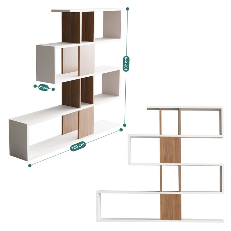 Knihovna je navržena v krásné kombinaci bílé a ořechové barvy, což