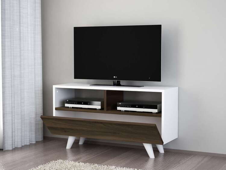 Seznamte se s TV stolkem, který dokonale splňuje požadavky moderního obývacího pokoje. Jeho design kombinuje bílou a ořechovou barvu, což přináší elegantní, ale teplý nádech do vašeho interiéru.