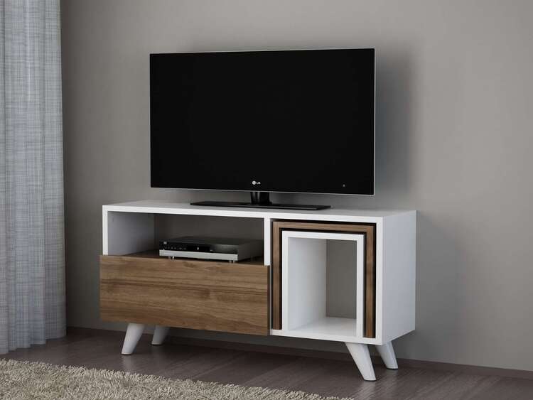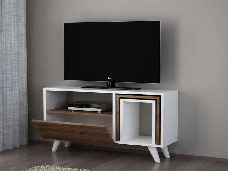 Představujeme multifunkční TV stolek, který je dokonalou kombinací estetiky a praktičnosti pro váš obývací pokoj. Tento moderní nábytek ve spojení bílé a ořechové barvy přináší teplý, ale zároveň svěží vzhled do každého interiéru.