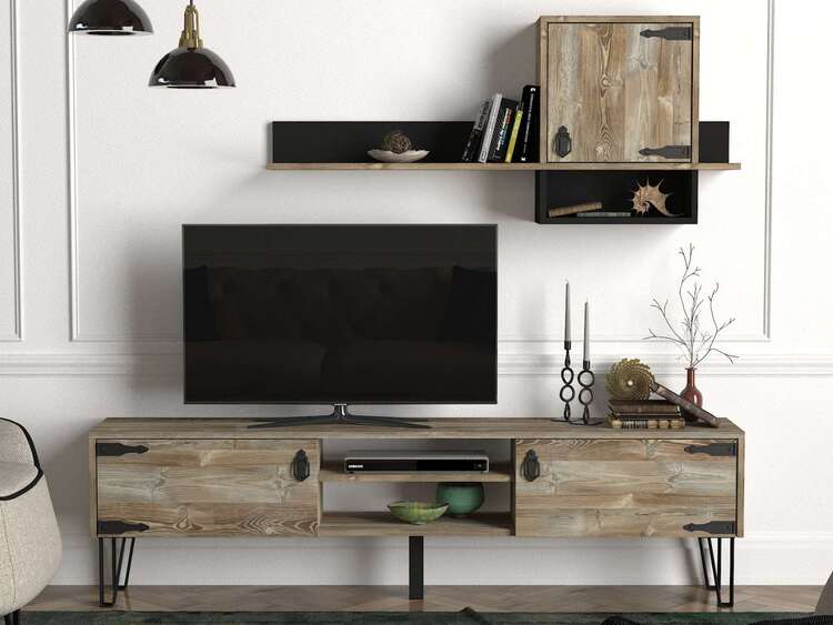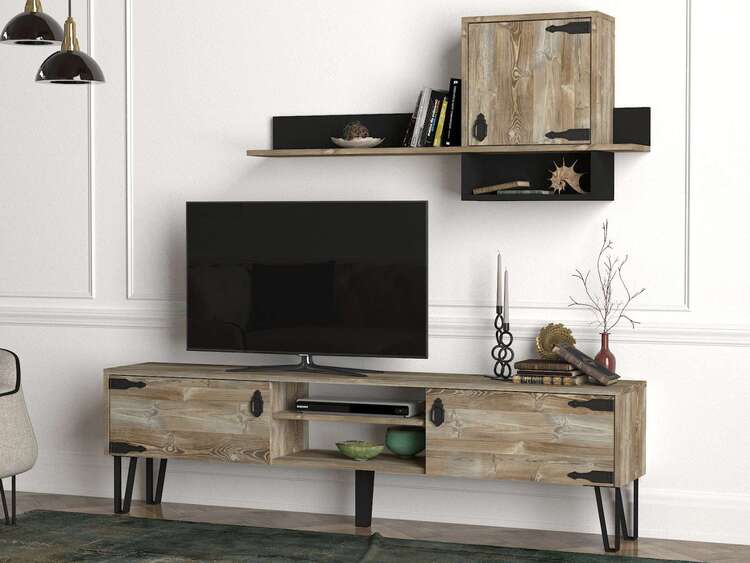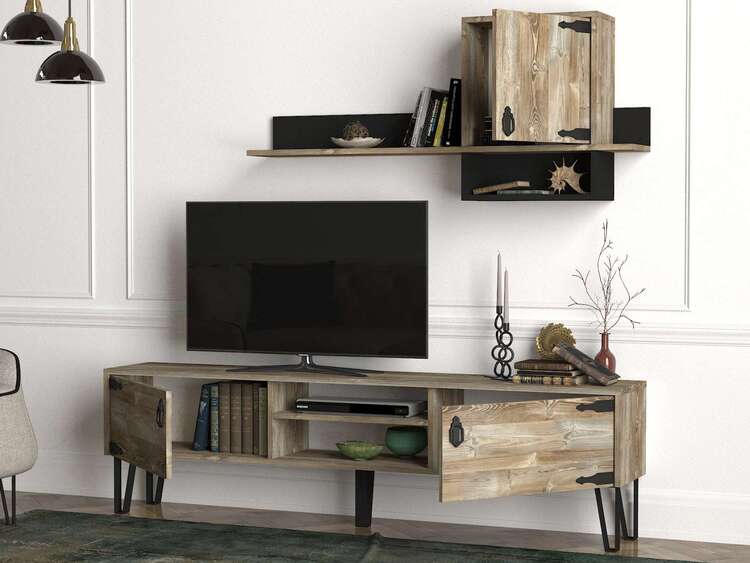 Představujeme obývací stěnu, která přináší do vašeho obývacího pokoje kombinaci moderního designu a funkčnosti. Tato stylová sestava ve světle hnědé barvě je navržena tak, aby poskytovala praktické a estetické řešení pro vaše multimediální zařízení a další potřeby.