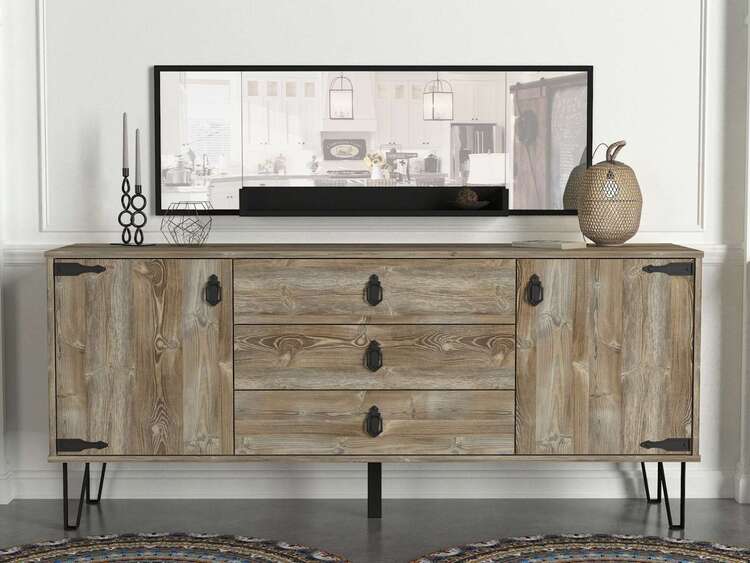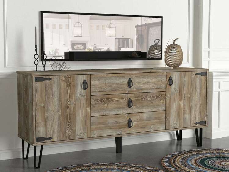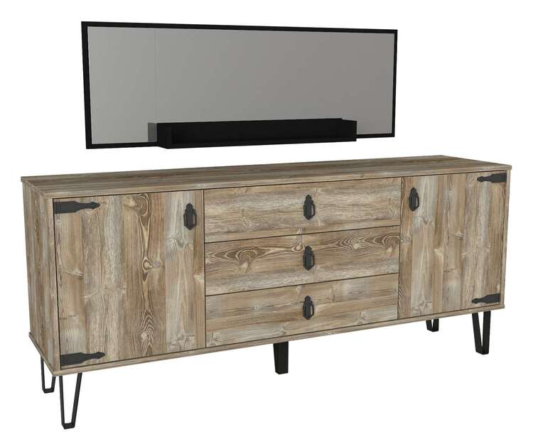 Sestava obsahuje nejen praktickou komodu, ale také nástěnné zrcadlo, které dodá vašemu prostoru světlo a opticky ho zvětší. Dodáváme v demontu, což znamená, že komodu a zrcadlo snadno složíte podle přiloženého návodu. Komoda je perfektní volbou pro každého, kdo hledá stylový a funkční nábytek do svého obývacího pokoje nebo ložnice.