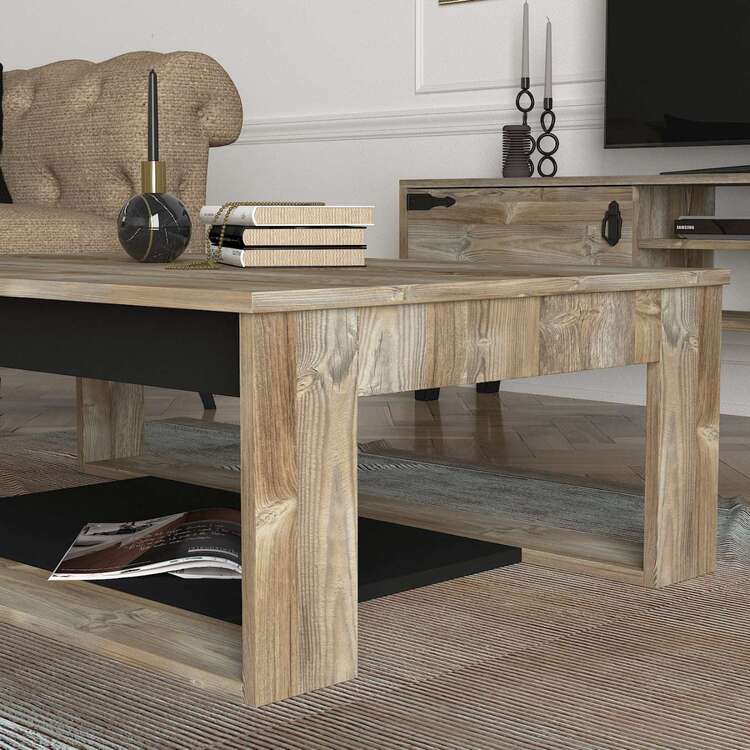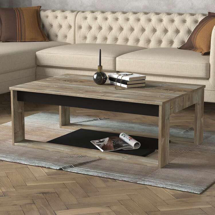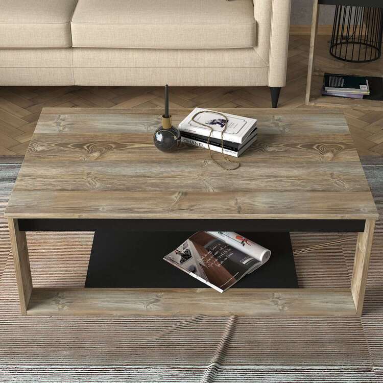 Stolek se vyznačuje světle hnědou barvou, která dodává vašemu obývacímu pokoji teplý a přívětivý vzhled. Jeho široký a obdélníkový tvar poskytuje dostatek prostoru pro různé předměty, které potřebujete mít po ruce. Odkládací police navíc přidává další úložný prostor, což zvyšuje jeho praktičnost.