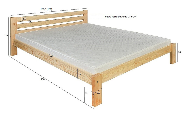 Stylová postel. Postel je vyrobena z kvalitního borovicového dřeva, které přinese do Vaší domácnosti tu správnou přírodní atmosféru a vůni dřeva. Základní borovicové dřevo je bez moření, můžete si však objednat i moření olše, dub, grey nebo ořech za 10% příplatek. Postel neobsahuje rošt a... více informací o zboží