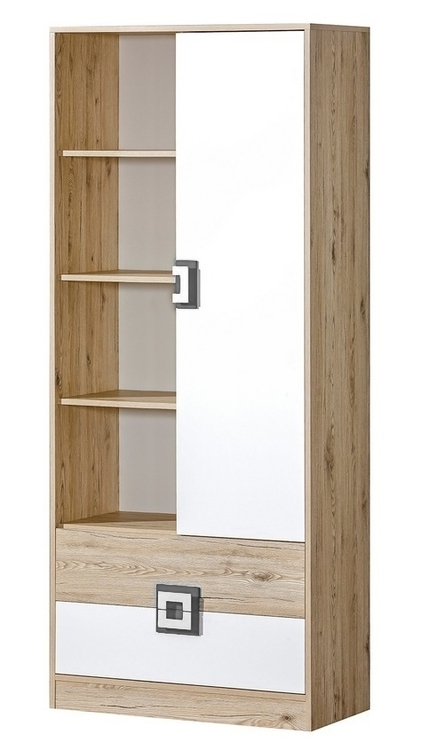 Kombinovaná skříň NIKO ze sektorové řady, která se vyznačuje netradičním zpracováním barev a originalitou úchytů. Tento styl nábytku zaujme každou mladší generaci. Skříň je vyrobena z kvalitní LTD desky hraněné ABS lištou. Korpus je v barvě dub jasný, dveře jsou v kombinaci barev bílá mat / dub jasný. Úchytky jsou v barevné kombinaci popel / bílá. Uzavřená pravá část skříně obsahuje tři police a v dolní společné části jsou 2 zásuvky. Sektorový nábytek NIKO má široký výběr prvků, který Vám zaručí sestavit si dětský nebo studentský pokoj, ložnici či kancelář podle svých potřeb, přání a představ. Dodáváme v demontovaném stavu.CASA 23004