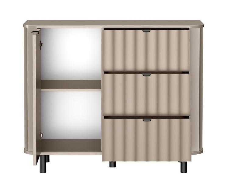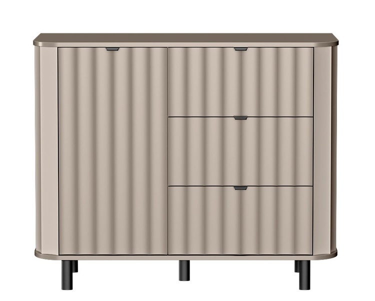 Komodu podepírají štíhlé kovové ocelové nožky práškově lakované