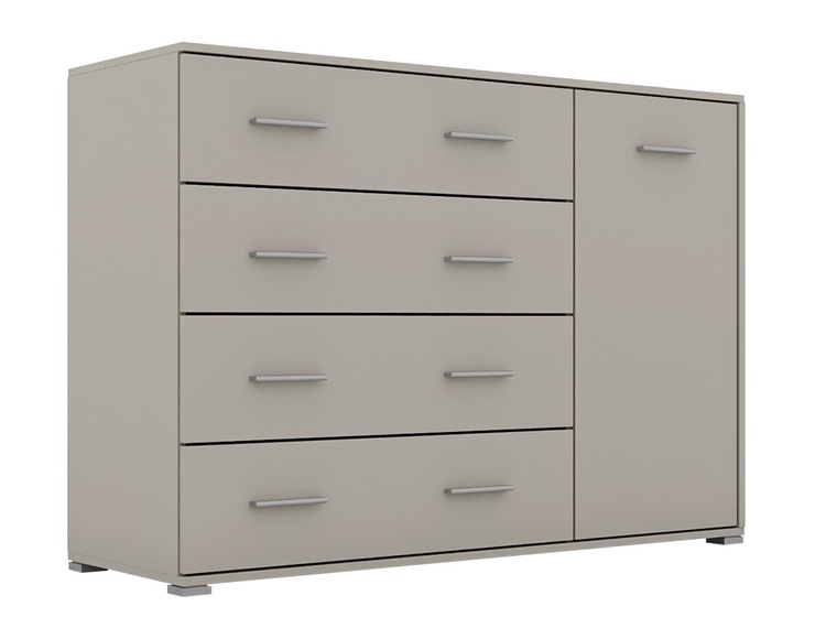 Komoda jednodveřová se čtyřmi zásuvkami je vyrobená z kvalitní laminátové desky (odolné a ekologicky šetrné) v barevném provedení kašmír. Kvalitní pojezdy zajišťují hladký a tichý pohyb zásuvek. Dodáváme v demontovaném stavu.CASA 83179