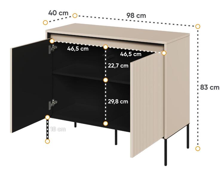 přední strana MDF 18 mm s půlválcovým frézováním, vše hraněno ABS